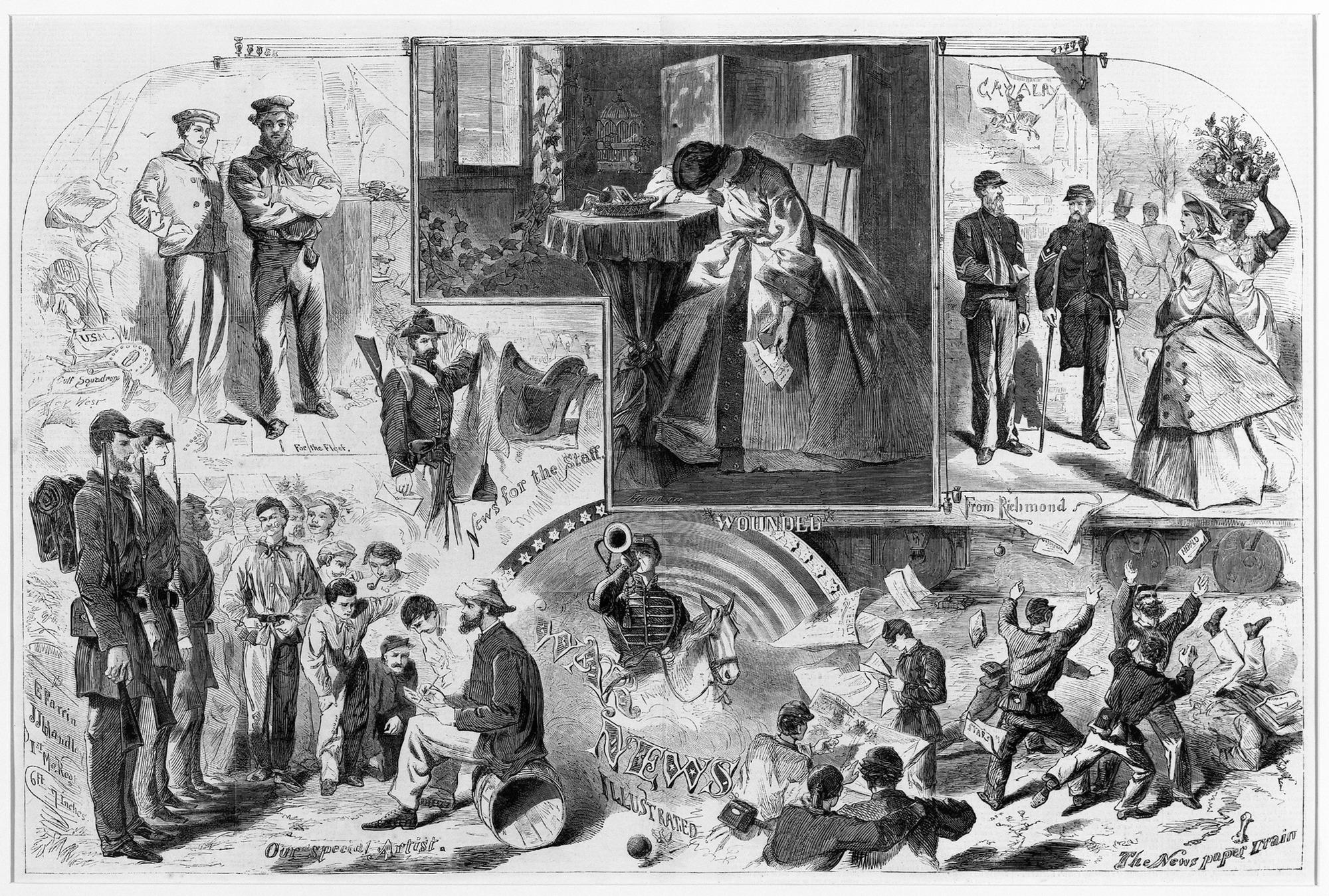 Winslow Homer (American, 1836–1910). News from the War, June 14, 1862. Wood engraving, Sheet: 15 15/16 x 21 5/8 in. (40.5 x 54.9 cm) Image: 13 5/16 x 20 3/8 in. (33.8 x 51.8 cm). Brooklyn Museum, Brooklyn Museum Collection, X1042.125. (Photo: Brooklyn Museum)