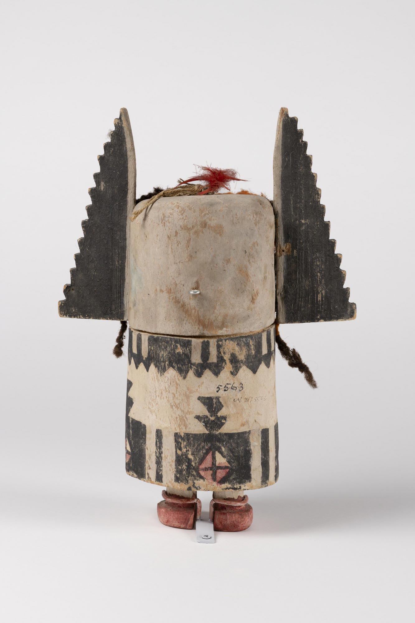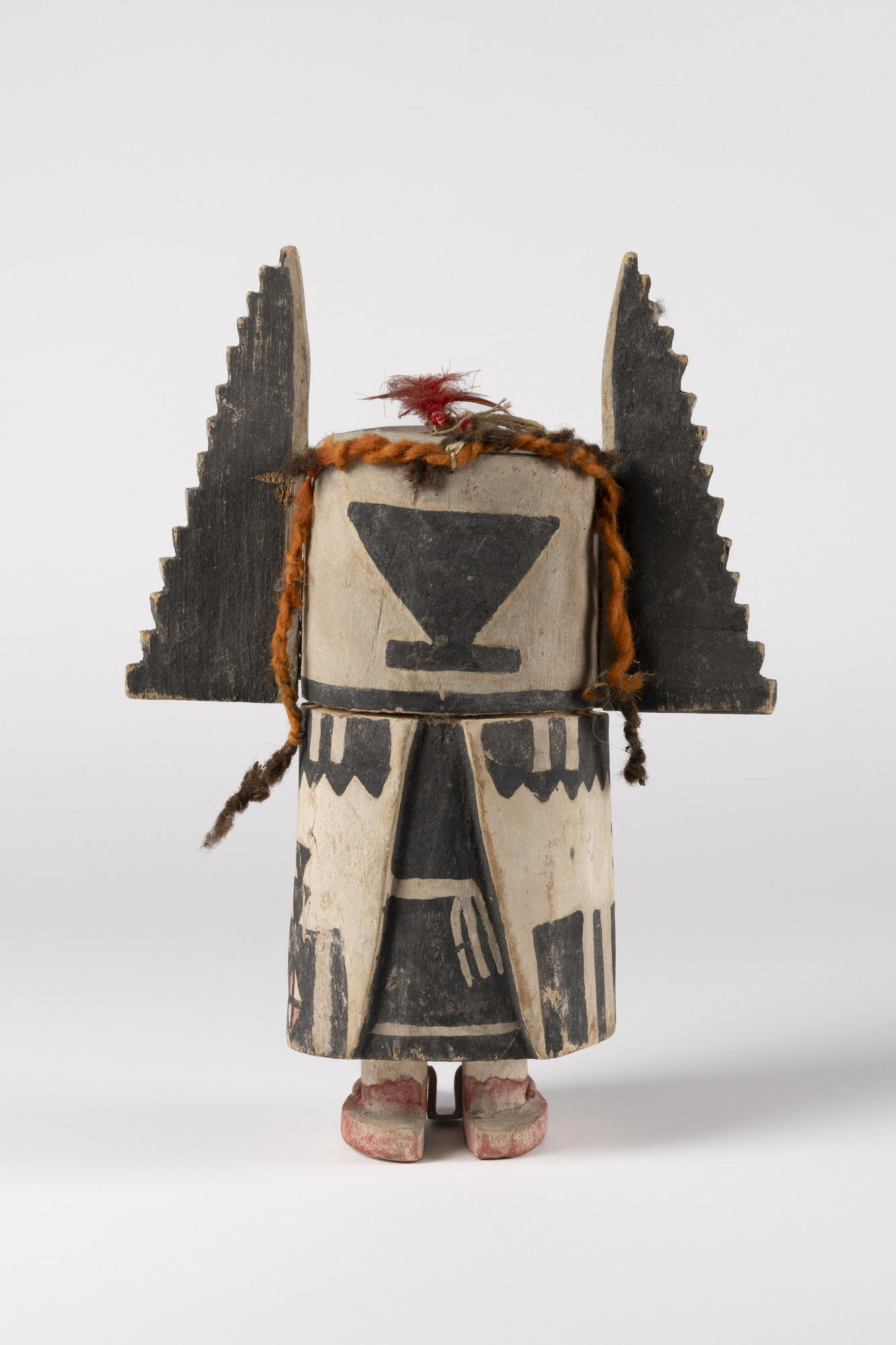 Hopi Pueblo. Kachina Doll (Angwusnasomtaqa), late 19th century. Wood, pigment, wool yarn, cotton cord, feathers, 12 × 8 1/2 × 4 in. (30.5 × 21.6 × 10.2 cm). Brooklyn Museum, Museum Expedition 1904, Museum Collection Fund, 04.297.5563. (Photo: Brooklyn Museum)