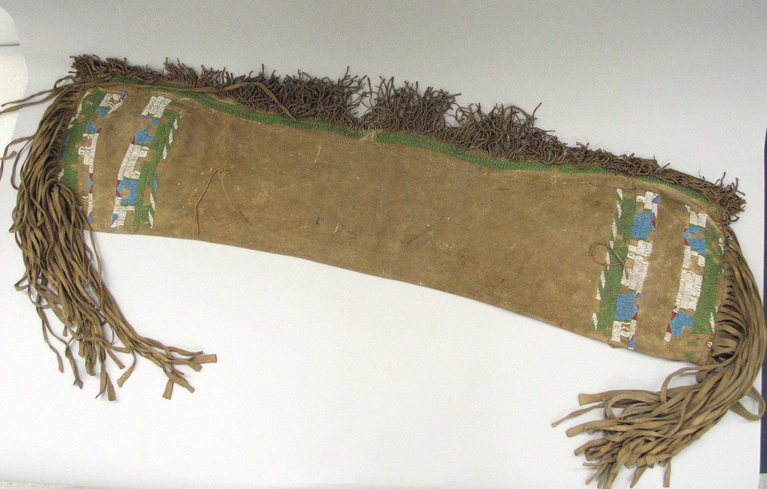 Plains. Saddle Bag, late 19th century. Hide, beads, sinew, cotton thread, 13 x 82 1/2 in. (33 x 209.6 cm). Brooklyn Museum, Brooklyn Museum Collection, X1126.44. (Photo: Brooklyn Museum)