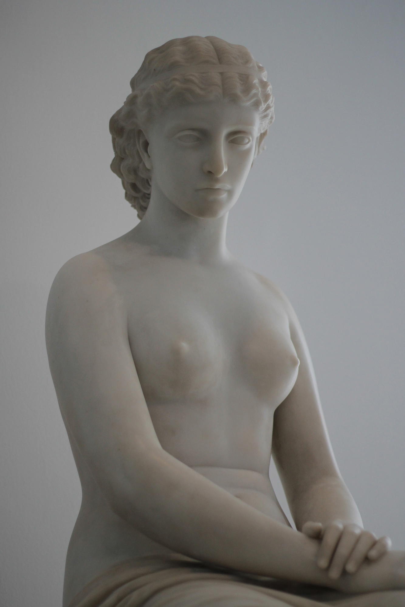 Hello! American Neoclassical sculpture occurred a little later than the European style. Many American sculptors trained and had their studios overseas, often in Italy, where marble quarries were easily accessible. They visited museums in cities like Rome and Florence and studied classical sculpture, Renaissance and Baroque sculpture, and more recent Neoclassical sculpture.It can actually be hard to spot the differences between Neoclassical sculptures by European artists and American artists living in Europe, since they were all inspired by the same tradition!Do we know how her toes broke?