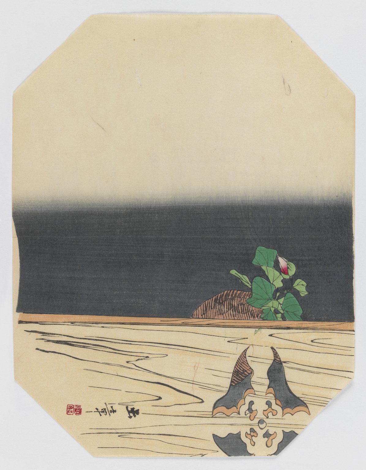 Kawabata Gyokusho (Japanese, 1842–1913). Hanging Flower Basket, ca. 1890. Woodblock color print, 8 3/4 x 11 3/8 in. (22.2 x 28.9 cm). Brooklyn Museum, Gift of the Estate of Dr. Eleanor Z. Wallace, 2007.32.18. (Photo: Brooklyn Museum)