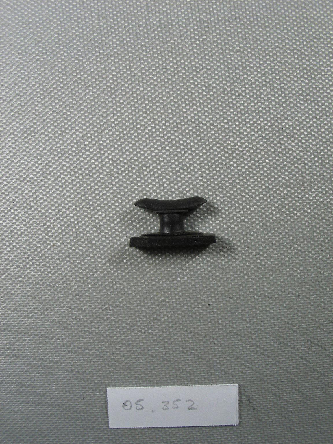 Headrest Amulet, 664–332 B.C.E.. Hematite, 1/2 x 1/4 x 7/8 in. (1.3 x 0.6 x 2.3 cm). Brooklyn Museum, Charles Edwin Wilbour Fund, 05.352. (Photo: Brooklyn Museum)