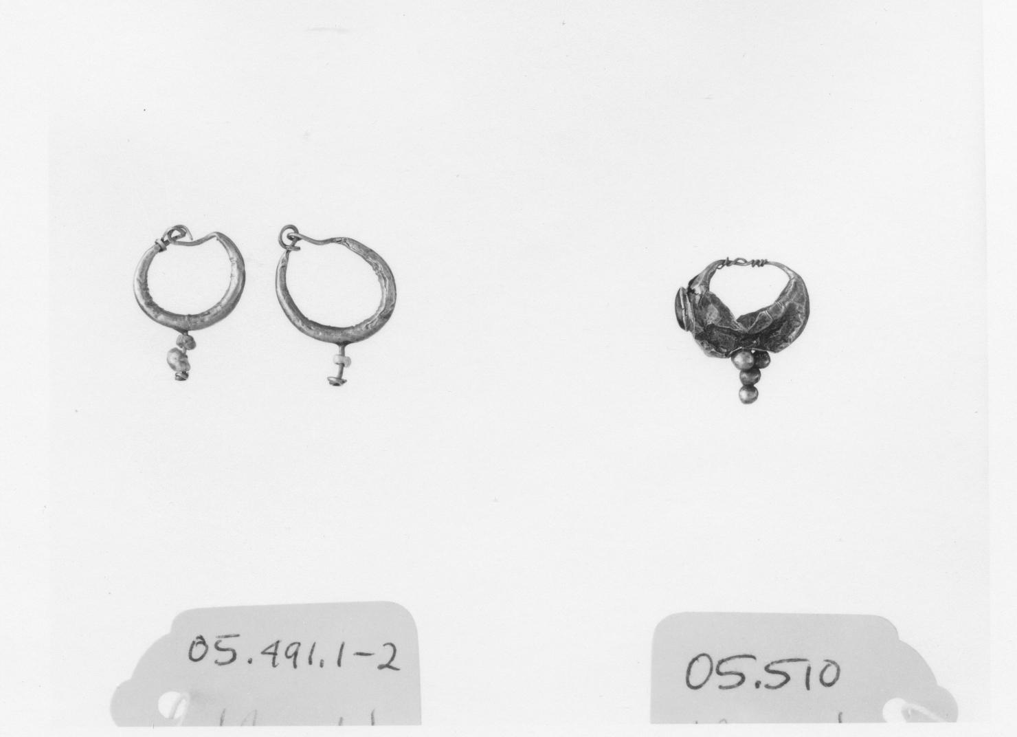 Roman. Single Earring, 2nd–3rd century C.E.. Gold, garnet, 9/16 x 11/16 in. (1.5 x 1.8 cm). Brooklyn Museum, Ella C. Woodward Memorial Fund, 05.510.