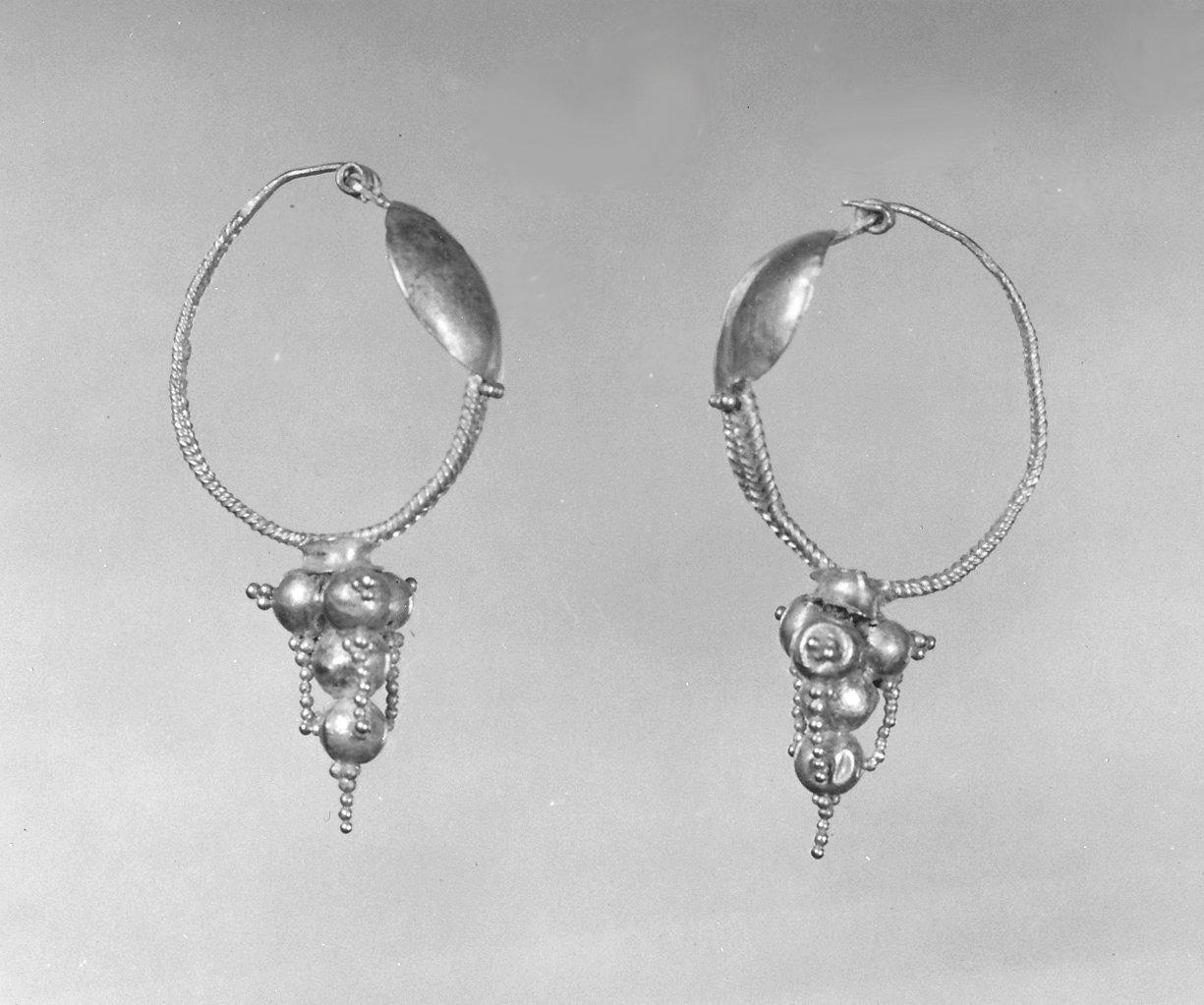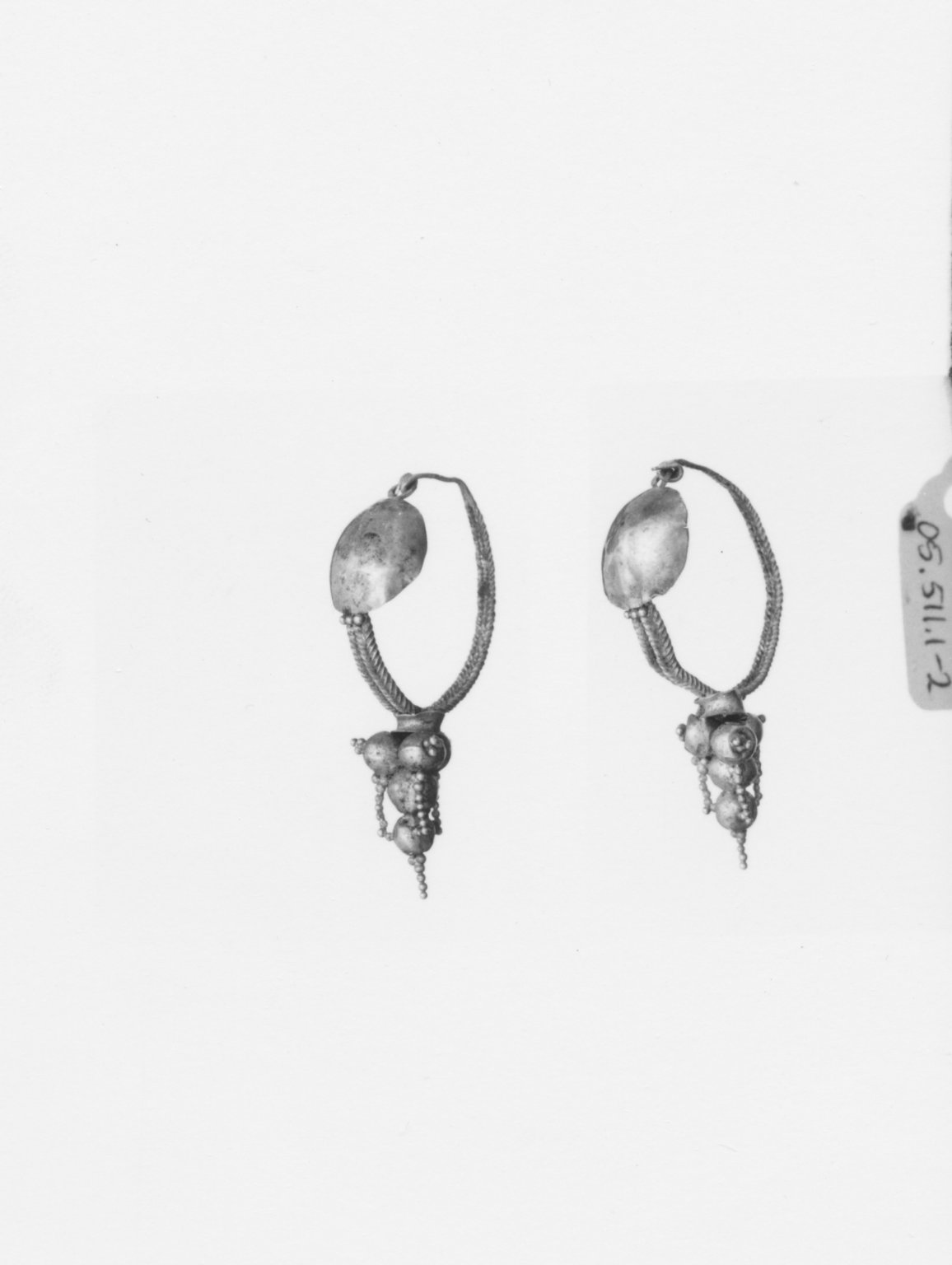 Roman. Earrings, 3rd century C.E.. Gold, Average Length: 1 1/2 in. (3.8 cm). Brooklyn Museum, Ella C. Woodward Memorial Fund, 05.511.1-.2. (Photo: Brooklyn Museum)
