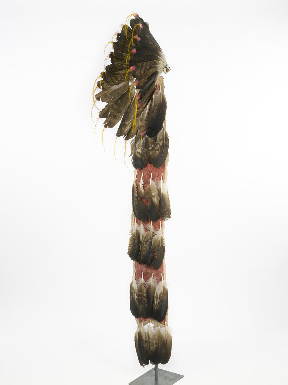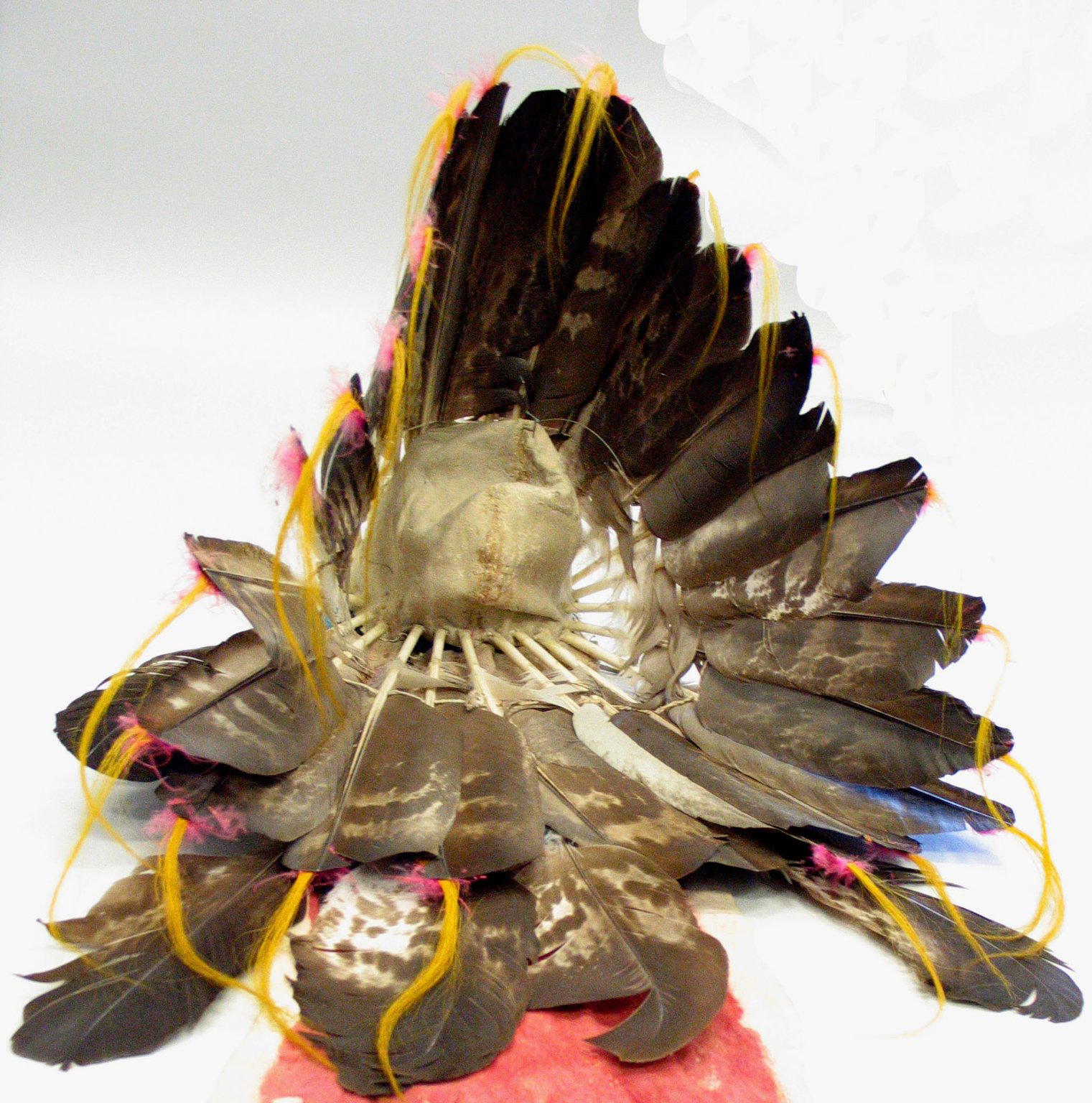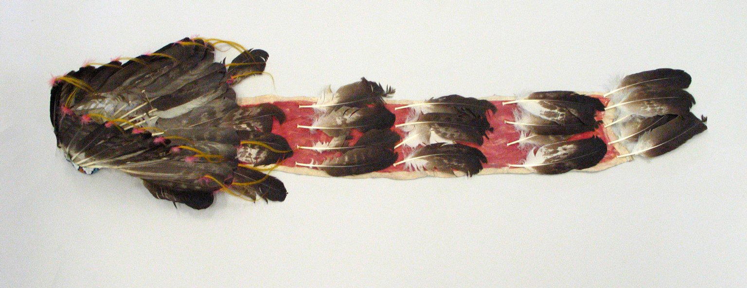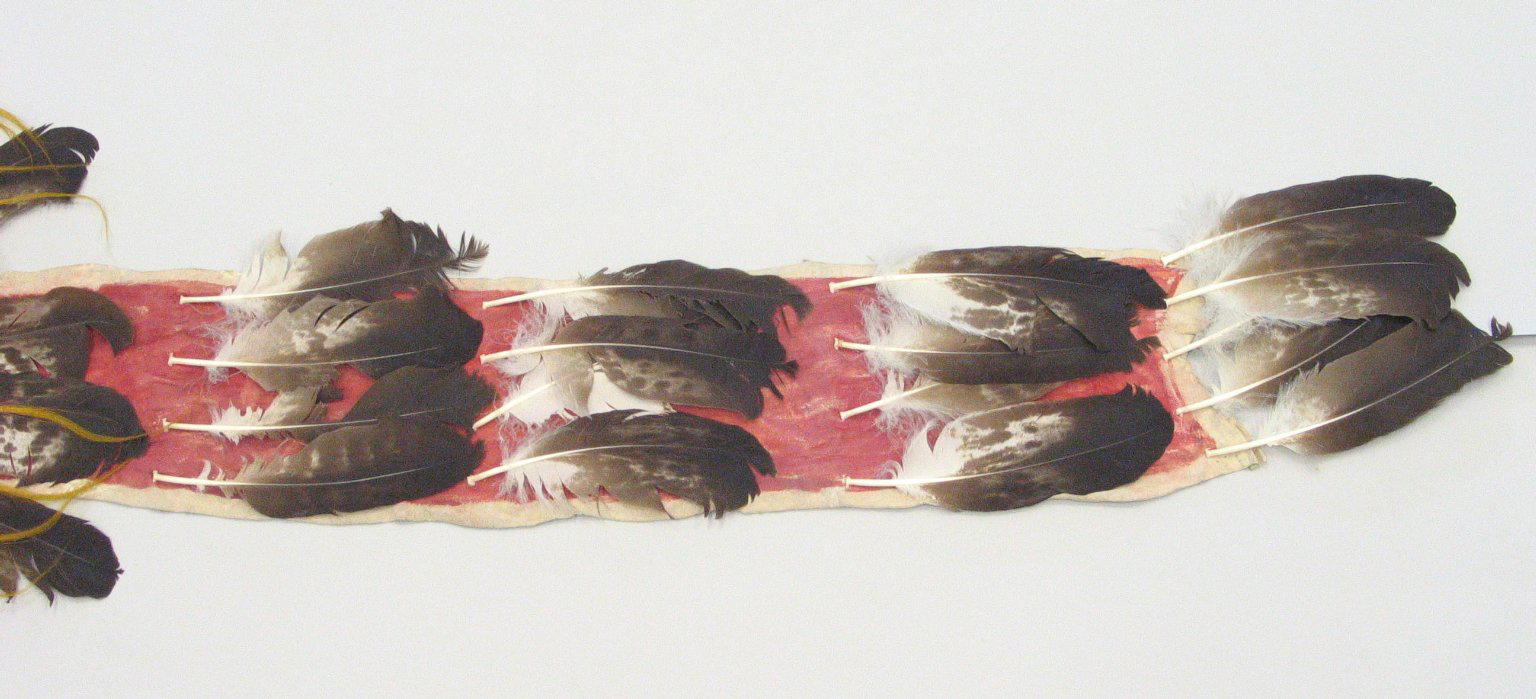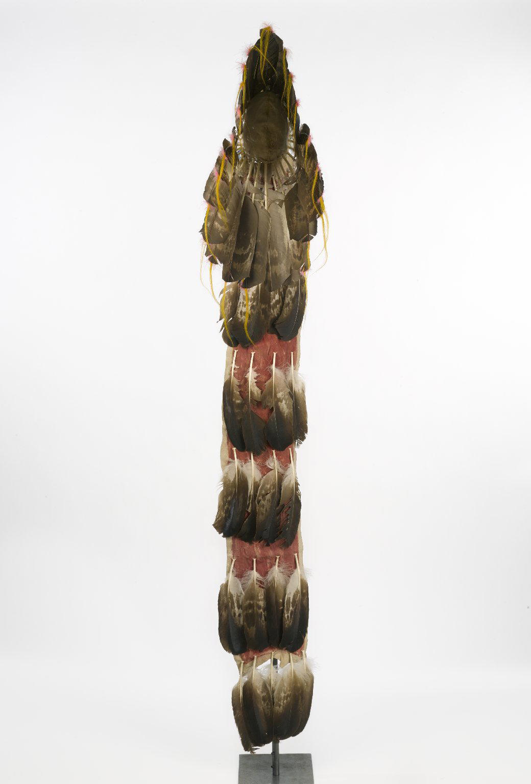 Sioux; or Cheyenne. Headdress or Feathered Bonnet, late 19th–early 20th century. Feathers, beads, pigment, hide,dyed horsehair, 68 1/2 x 8 7/16in. (174 x 21.5cm). Brooklyn Museum, Brooklyn Museum Collection, 05.553. (Photo: Brooklyn Museum)