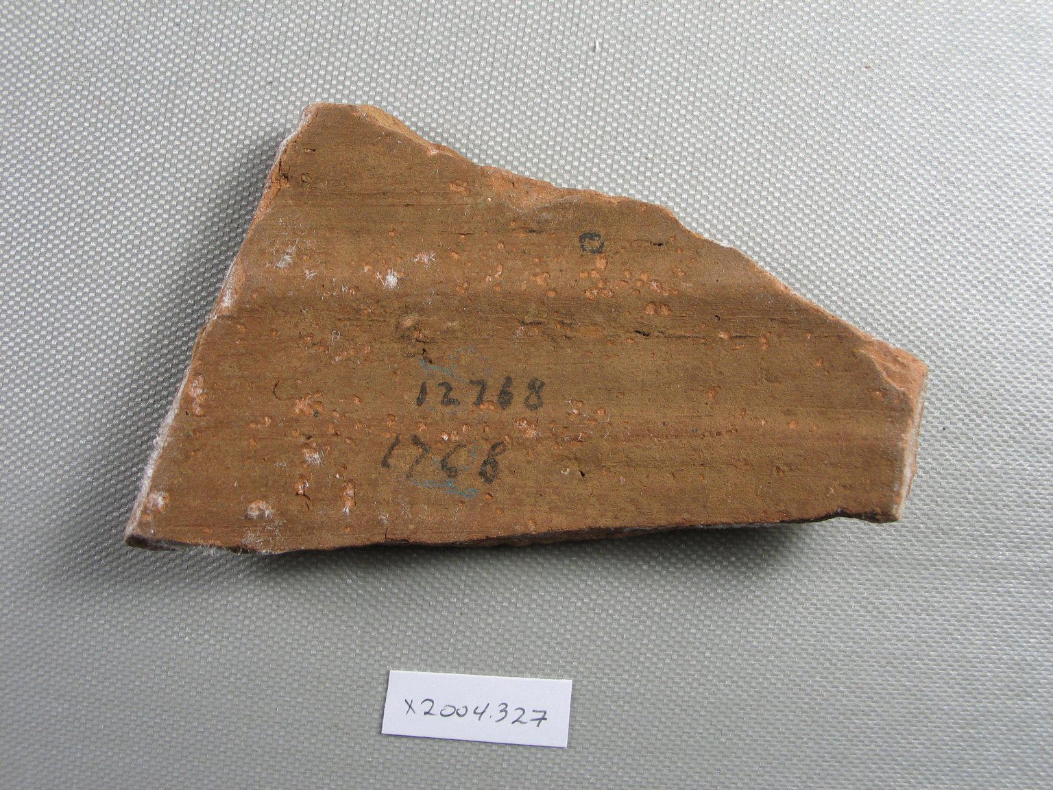 Demotic. Demotic Ostracon, Year 12 of a late (?) Ptolemy. Terracotta, pigment, 2 13/16 x 3/8 x 4 3/16 in. (7.2 x 1 x 10.7 cm). Brooklyn Museum, Gift of Evangeline Wilbour Blashfield, Theodora Wilbour, and Victor Wilbour honoring the wishes of their mother, Charlotte Beebe Wilbour, as a memorial to their father, Charles Edwin Wilbour, 16.580.544. (Photo: Brooklyn Museum)