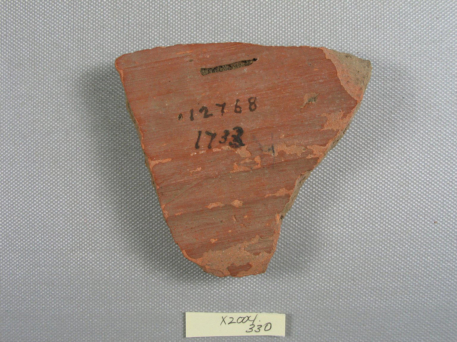 Demotic. Demotic Ostracon, Year 12 (?) of a Ptolemy. Terracotta, pigment, 3 9/16 x 3/8 x 3 9/16 in. (9 x 0.9 x 9 cm). Brooklyn Museum, Gift of Evangeline Wilbour Blashfield, Theodora Wilbour, and Victor Wilbour honoring the wishes of their mother, Charlotte Beebe Wilbour, as a memorial to their father, Charles Edwin Wilbour, 16.580.547. (Photo: Brooklyn Museum)