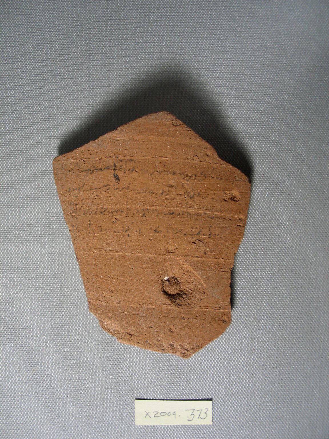 Demotic. Demotic Ostracon, Year 11 of Tiberius?. Terracotta, pigment, 3 7/8 x 3/8 x 4 5/8 in. (9.9 x 0.9 x 11.7 cm). Brooklyn Museum, Gift of Evangeline Wilbour Blashfield, Theodora Wilbour, and Victor Wilbour honoring the wishes of their mother, Charlotte Beebe Wilbour, as a memorial to their father, Charles Edwin Wilbour, 16.580.584. (Photo: Brooklyn Museum)