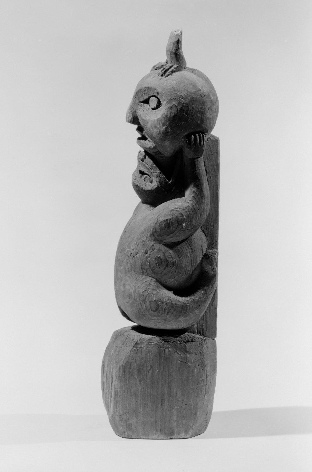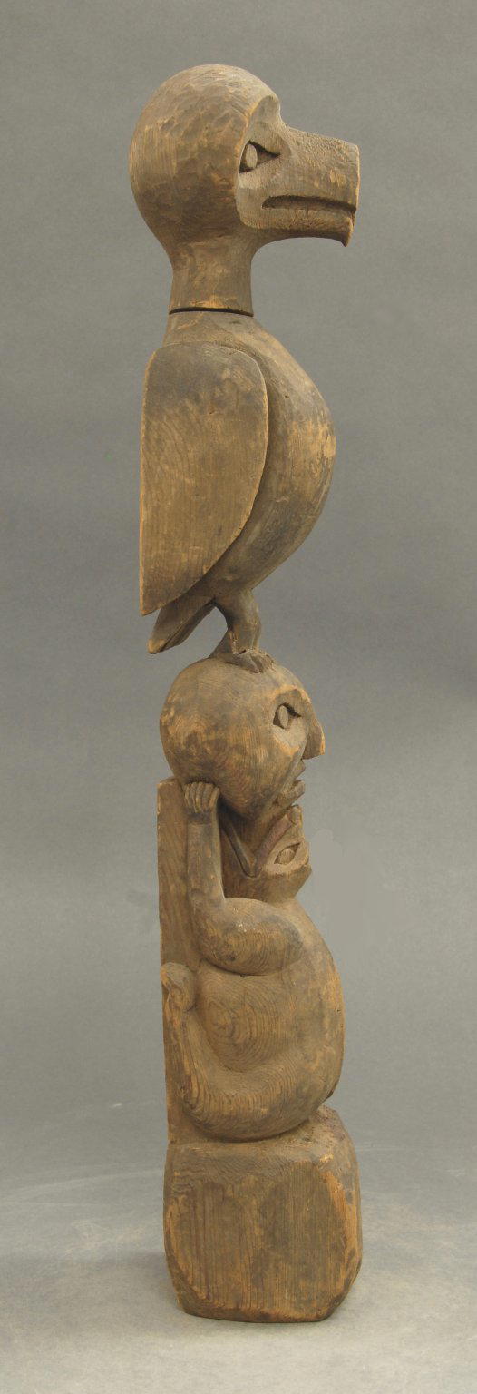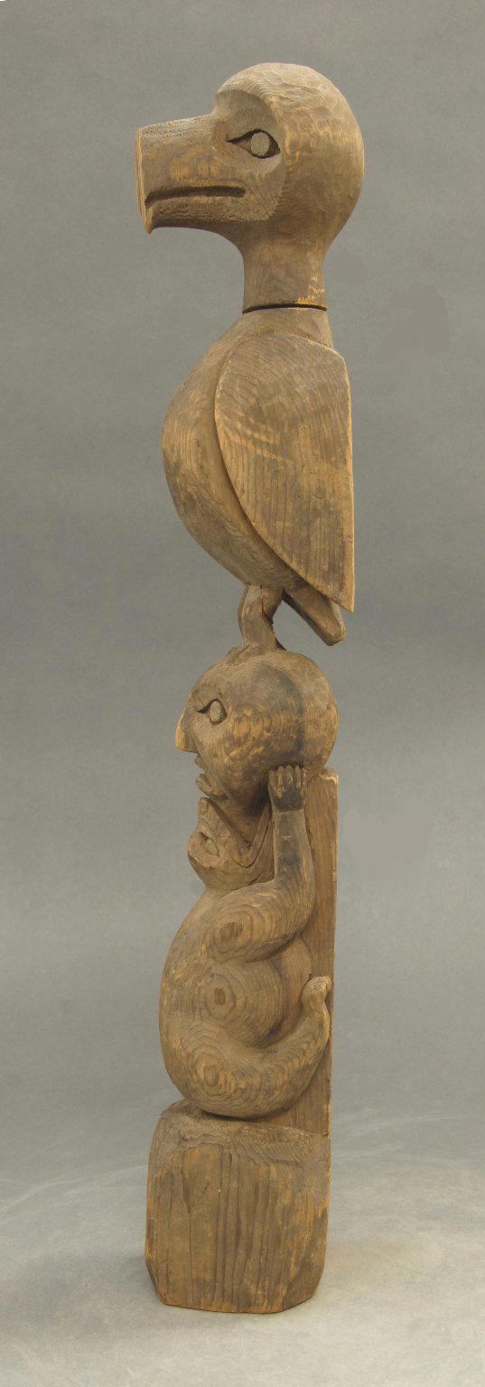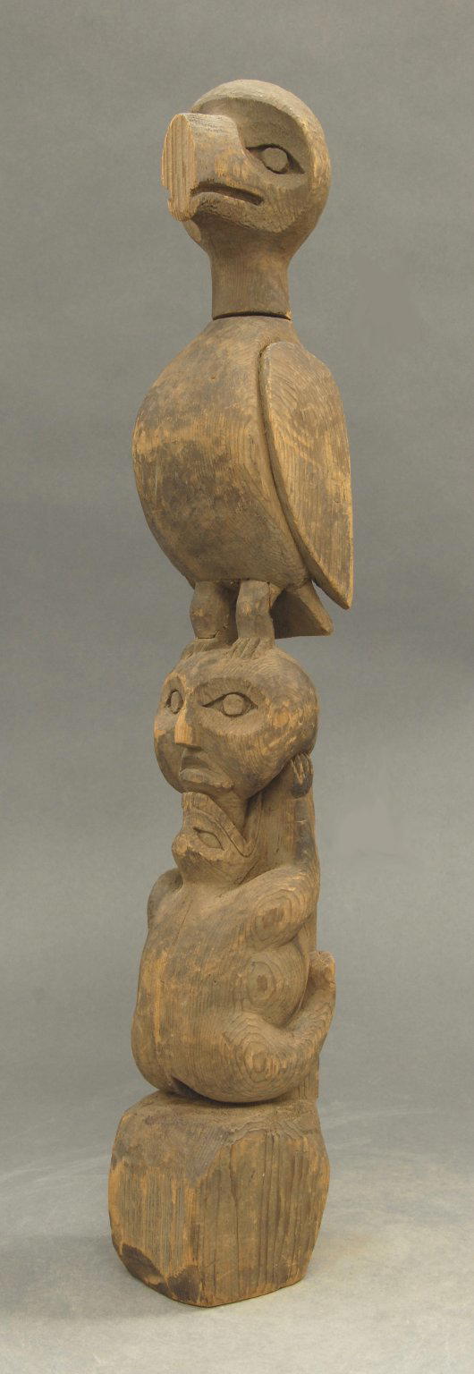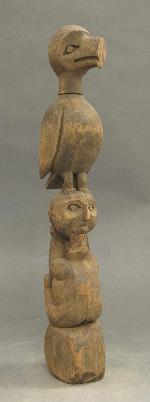 Probably Coast Salish, Nanaimo. Model Totem Pole, late 19th–early 20th century. Wood, 16 15/16 x 2 3/8 x 3 1/8 in. (43 x 6 x 8 cm). Brooklyn Museum, By exchange, 07.473. (Photo: Brooklyn Museum)