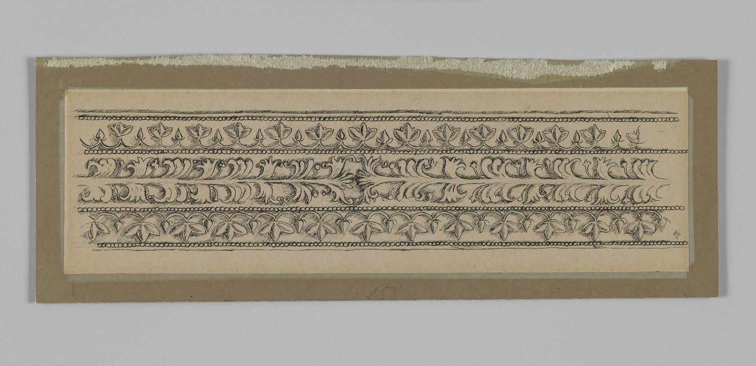 James Tissot (Nantes, France, 1836–1902, Chenecey–Buillon, France). Metal Ornament Taken from the Mosque of Es-Sakra, 1886–1887 or 1889. Ink on paper mounted on board, mat: 3 1/8 x 8 3/4 in. (7.9 x 22.2 cm) sheet: 2 3/8 x 8 in. (6 x 20.3 cm). Brooklyn Museum, Purchased by public subscription, 00.159.355.3. (Photo: Brooklyn Museum)