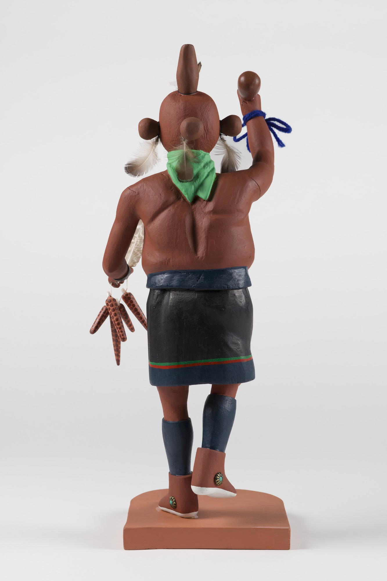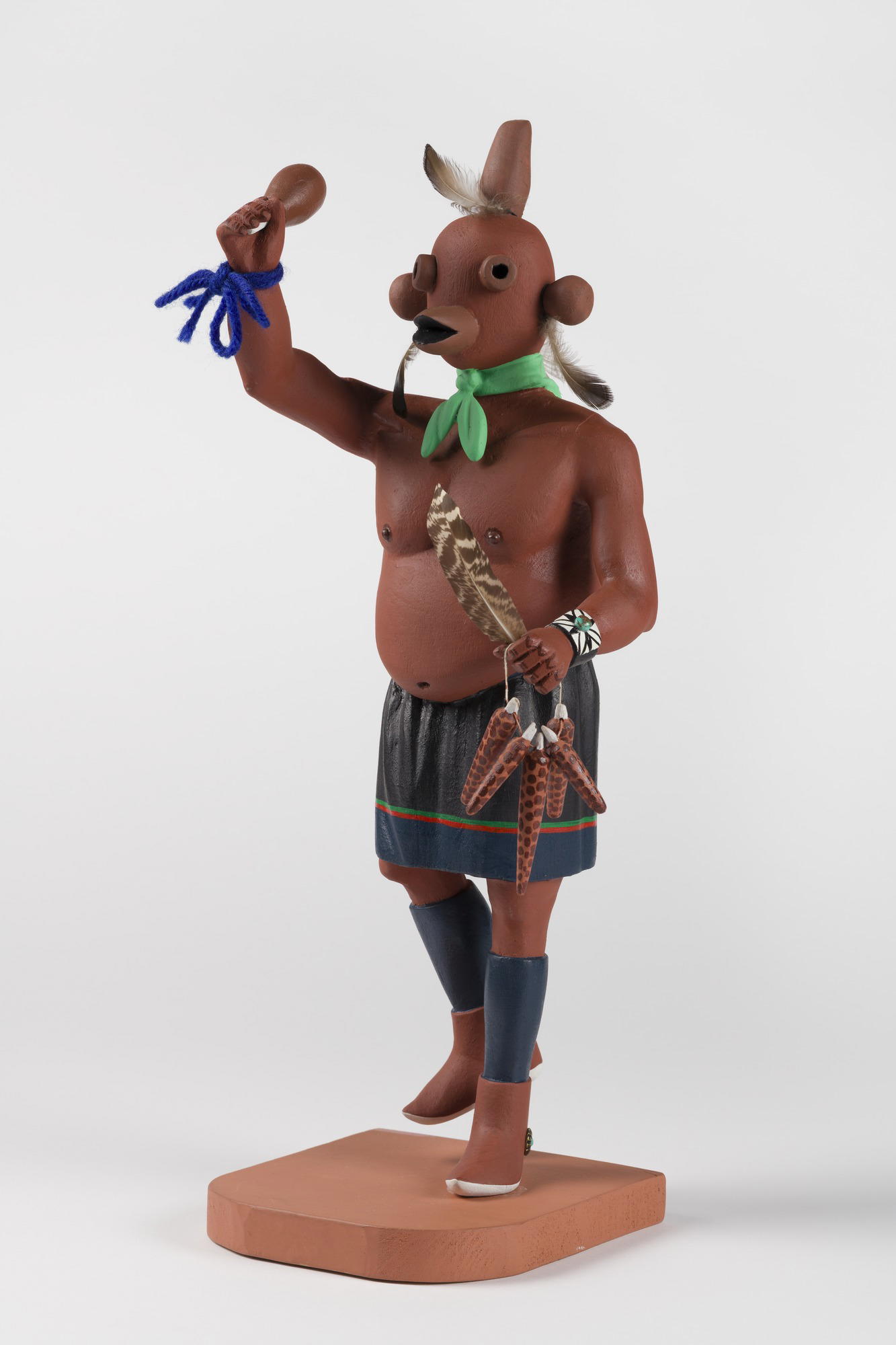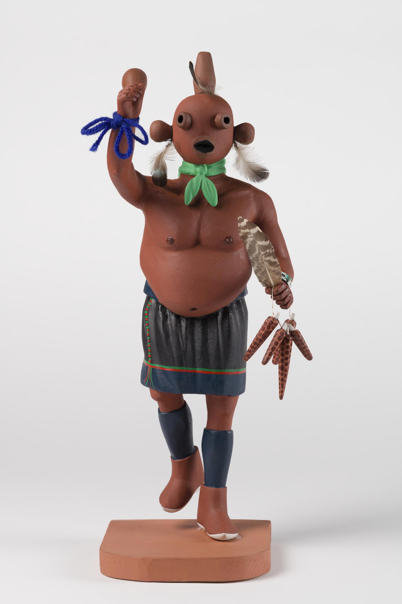 Henry Shelton (1929–2016); Pueblo, Hopi. Kachina Doll (Koyemsi), 1960–1970. Cottonwood root, acrylic pigment, feathers, yarn, iron alloy, 16 3/4 × 7 × 5 5/8 in. (42.5 × 17.8 × 14.3 cm) mount: 17 × 7 × 5 1/2 in. (43.2 × 17.8 × 14 cm). Brooklyn Museum, Gift of Edith and Hershel Samuels, 2010.6.3. (Photo: Brooklyn Museum)