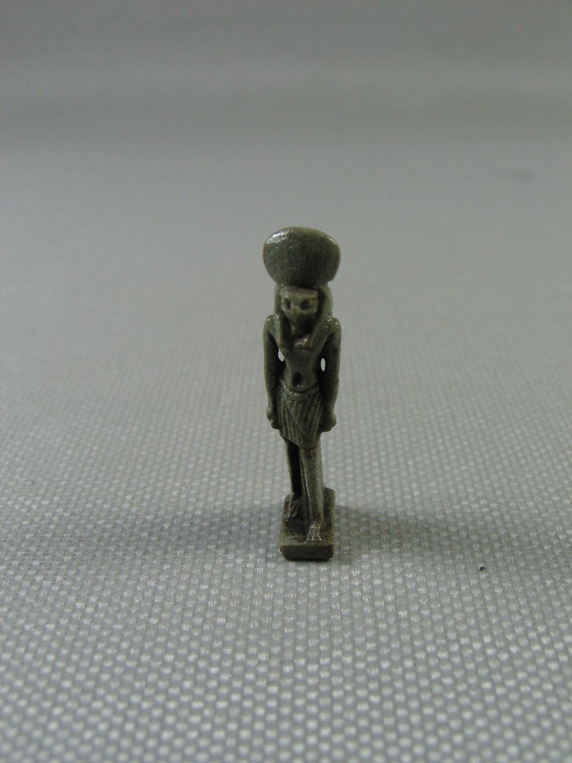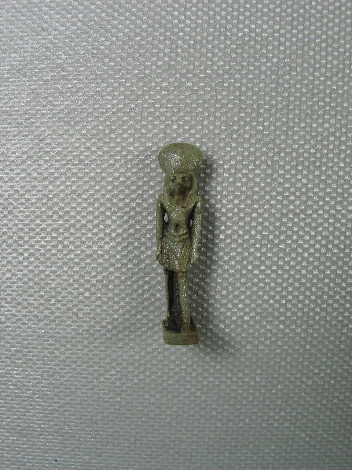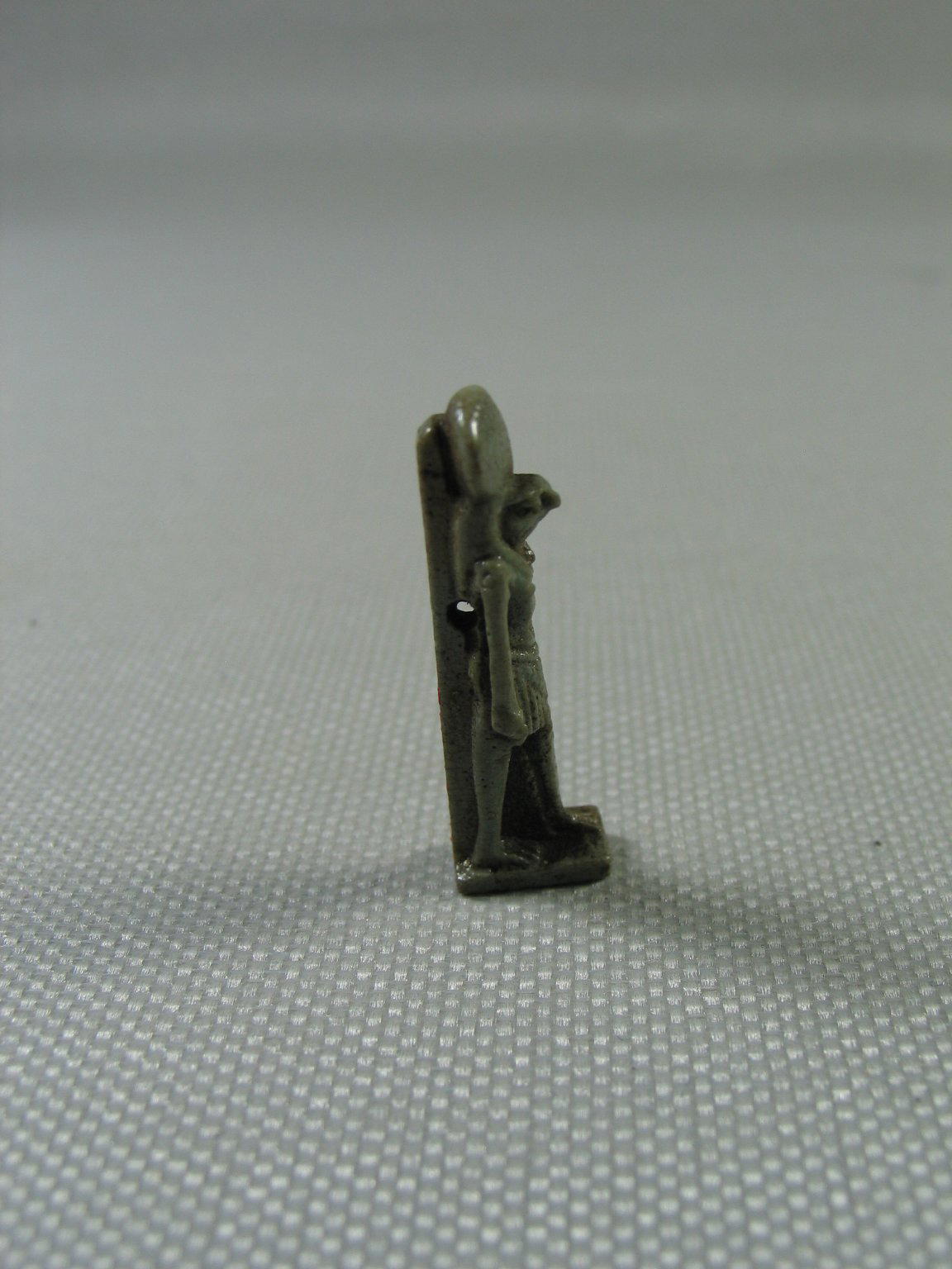 Falcon-Headed God Amulet, 664–31 B.C.E.. Faience, 1 3/16 x 1/4 x 3/8 in. (3 x 0.6 x 0.9 cm). Brooklyn Museum, Charles Edwin Wilbour Fund, 08.480.123. (Photo: Brooklyn Museum)