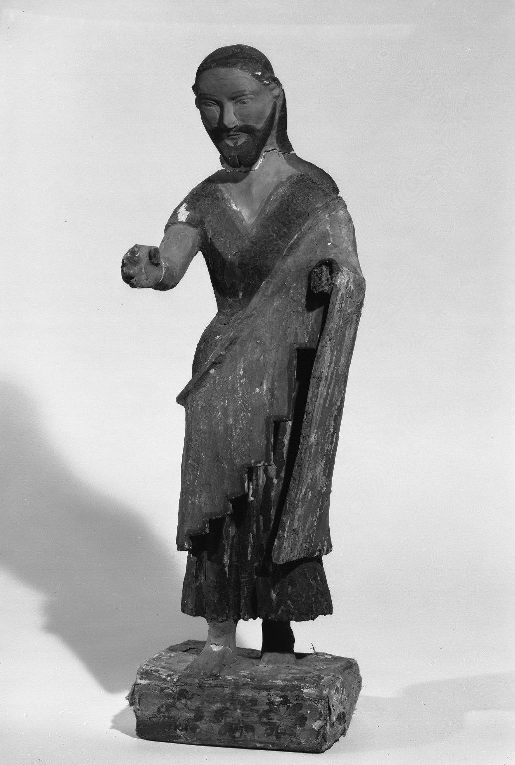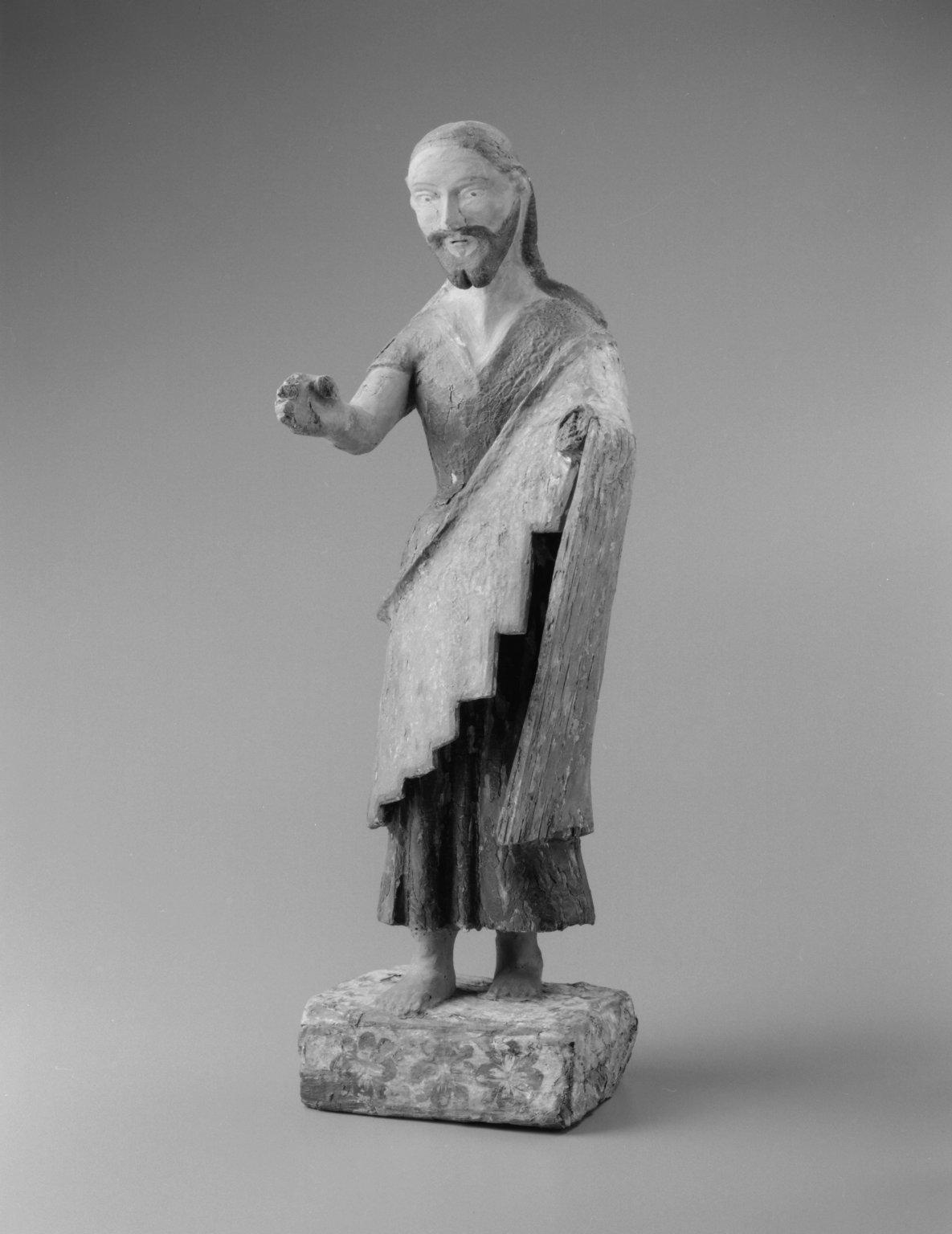This statue of Saint Joseph (his staff and the Christ Child are missing) reportedly comes from the church at Zia Pueblo, where it was likely displayed on a sanctuary table. The artist could have been Native American or of Mexican-Hispanic heritage.