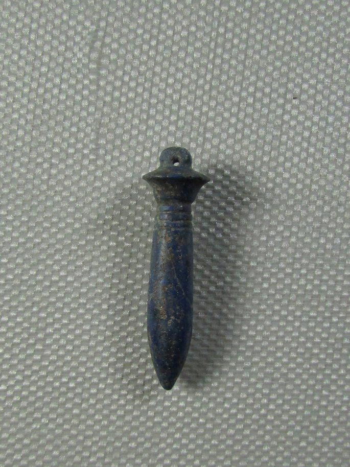 Papyrus Column Amulet, 664–525 B.C.E.. Lapis lazuli, Diam. 3/8 x 1 1/4 in. (0.9 x 3.1 cm). Brooklyn Museum, Charles Edwin Wilbour Fund, 08.480.171. (Photo: Brooklyn Museum)