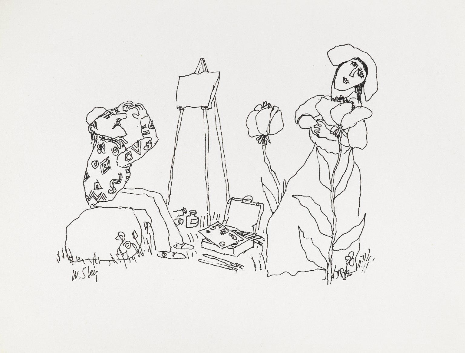 William Steig (American, 1907–2003). [Untitled] (Painter with Lady and Flowers), Brooklyn Museum, Gift of Jeanne Steig, 2010.20.58. © Estate of William Steig. (Photo: Brooklyn Museum)