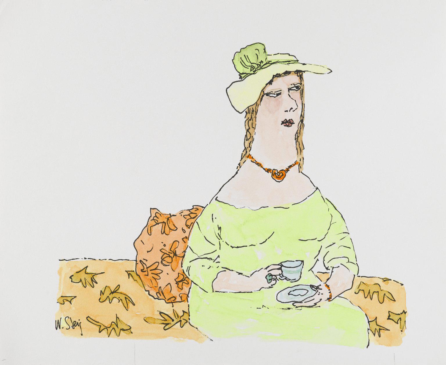 William Steig (American, 1907–2003). [Untitled] (Woman with Teacup), Brooklyn Museum, Gift of Jeanne Steig, 2010.20.75. © Estate of William Steig. (Photo: Brooklyn Museum)