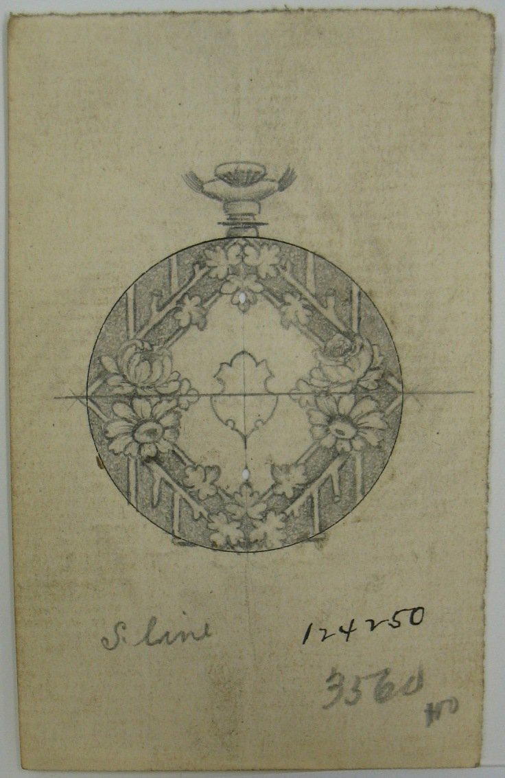 Frederick John Beck (American, 1864–1917). Watch-case Design, Graphite and ink on paper, 3 1/2 x 2 3/16 in. (8.9 x 5.6 cm). Brooklyn Museum, Gift of Herbert F. Beck and Frederick Lorenze Beck, 26.515.44. (Photo: Brooklyn Museum)