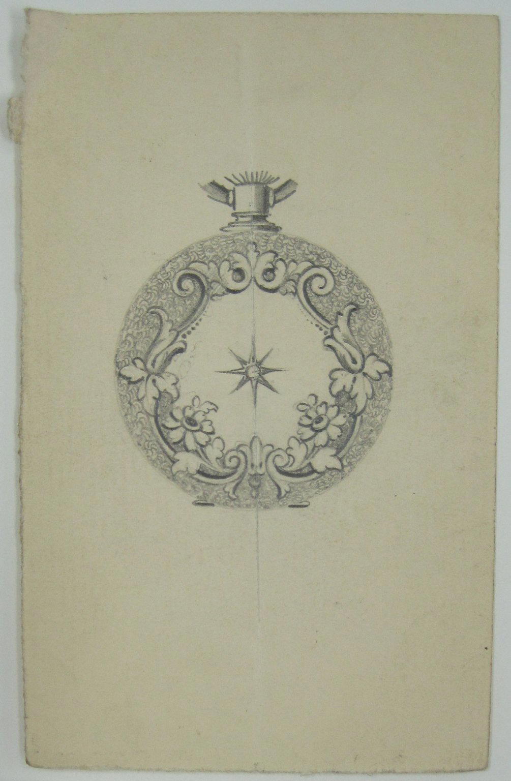 Frederick John Beck (American, 1864–1917). Watch-case Design, Graphite on paper, 4 x 2 9/16 in. (10.2 x 6.5 cm). Brooklyn Museum, Gift of Herbert F. Beck and Frederick Lorenze Beck, 26.515.88. (Photo: Brooklyn Museum)
