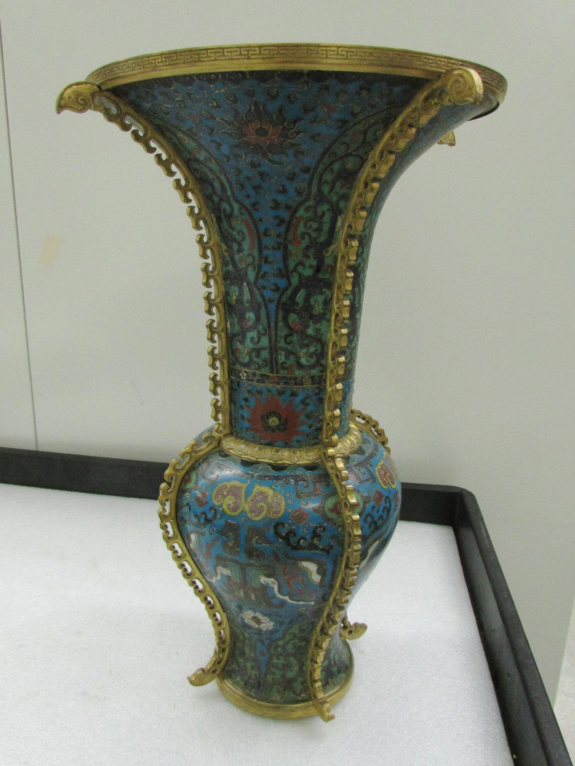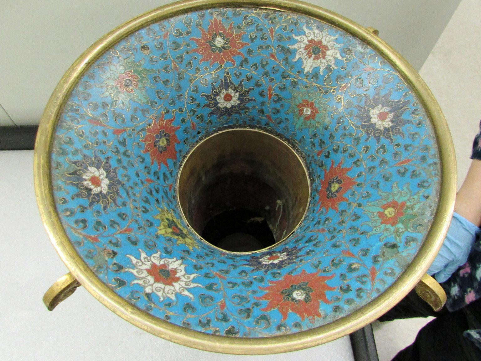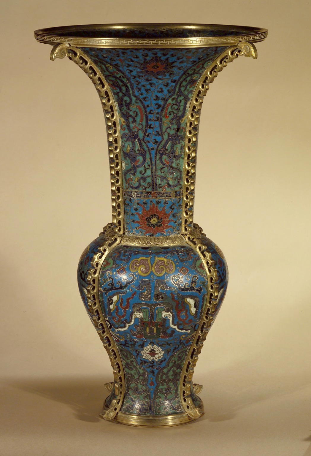 Large Trumpet Baluster Shaped Vase, 1664–1722. Cloisonné enamel on copper alloy, 21 1/2 x 15 3/16 in. (54.6 x 38.5 cm). Brooklyn Museum, Gift of Samuel P. Avery, 09.579. (Photo: Brooklyn Museum)