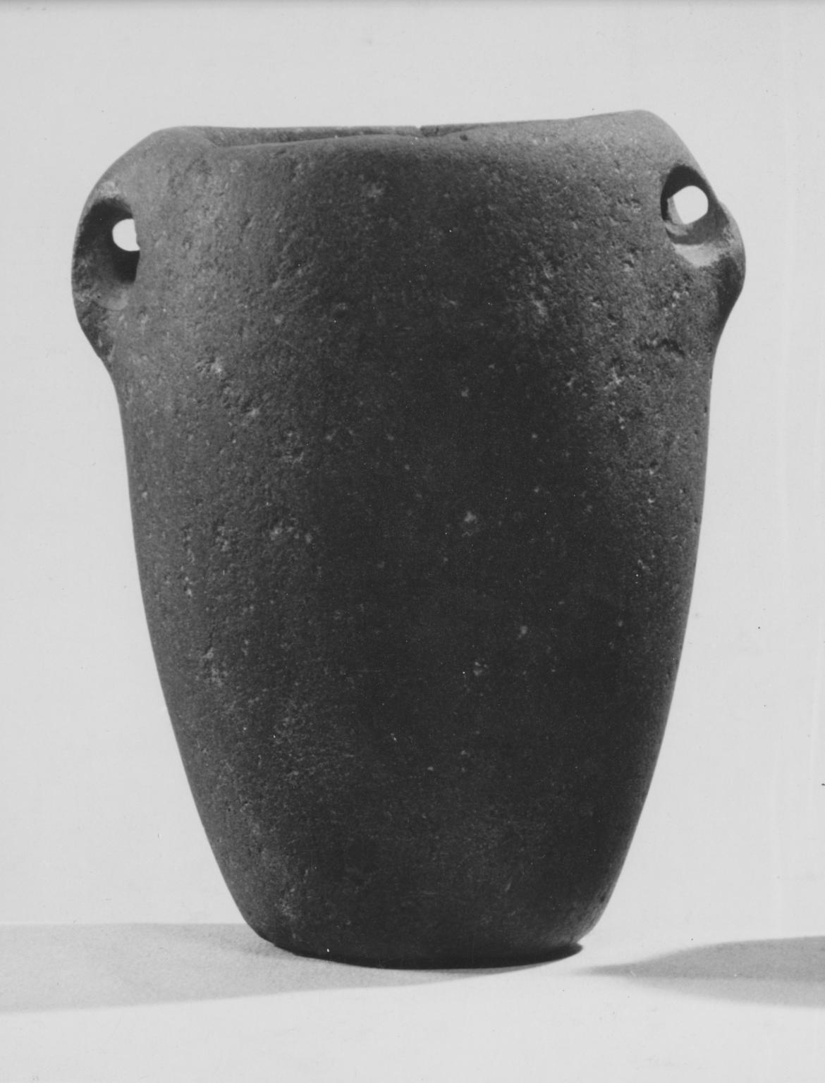 Standing Vase, ca. 3500–3300 B.C.E.. Basalt, 3 11/16 x Diam. 1 13/16 in. (9.3 x 4.6 cm). Brooklyn Museum, Charles Edwin Wilbour Fund, 09.889.23. (Photo: Brooklyn Museum)