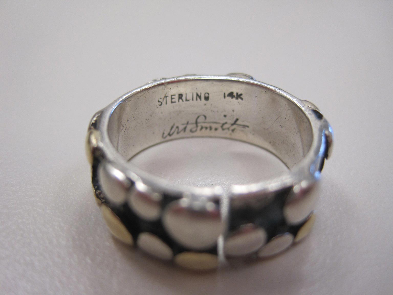 Interior of rin, stamped: 'Art Smith/STERLING/14K'
