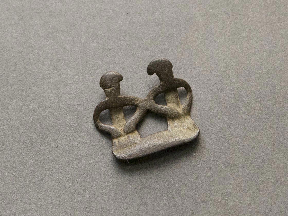 Senufo. Divination Twin Figure, early 20th century. Bronze, 13/16 x 7/8 x 1/16 in. (2.1 x 2.3 x 0.2 cm). Brooklyn Museum, Gift of Jerome Vogel, 2012.76.22. (Photo: Brooklyn Museum)