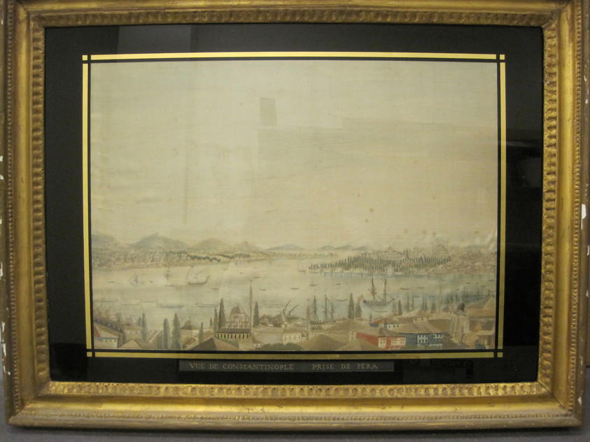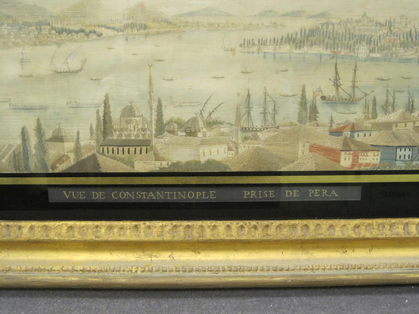 View of Constantinople (Vue de Constantinople), late 18th century. Silk threads on silk ground, eglomise surround, gilt wood frame, 21 3/8 x 28 1/4 in. (54.3 x 71.8 cm). Brooklyn Museum, Gift of Sarah B. Sherrill, 2013.46.1. (Photo: Brooklyn Museum)
