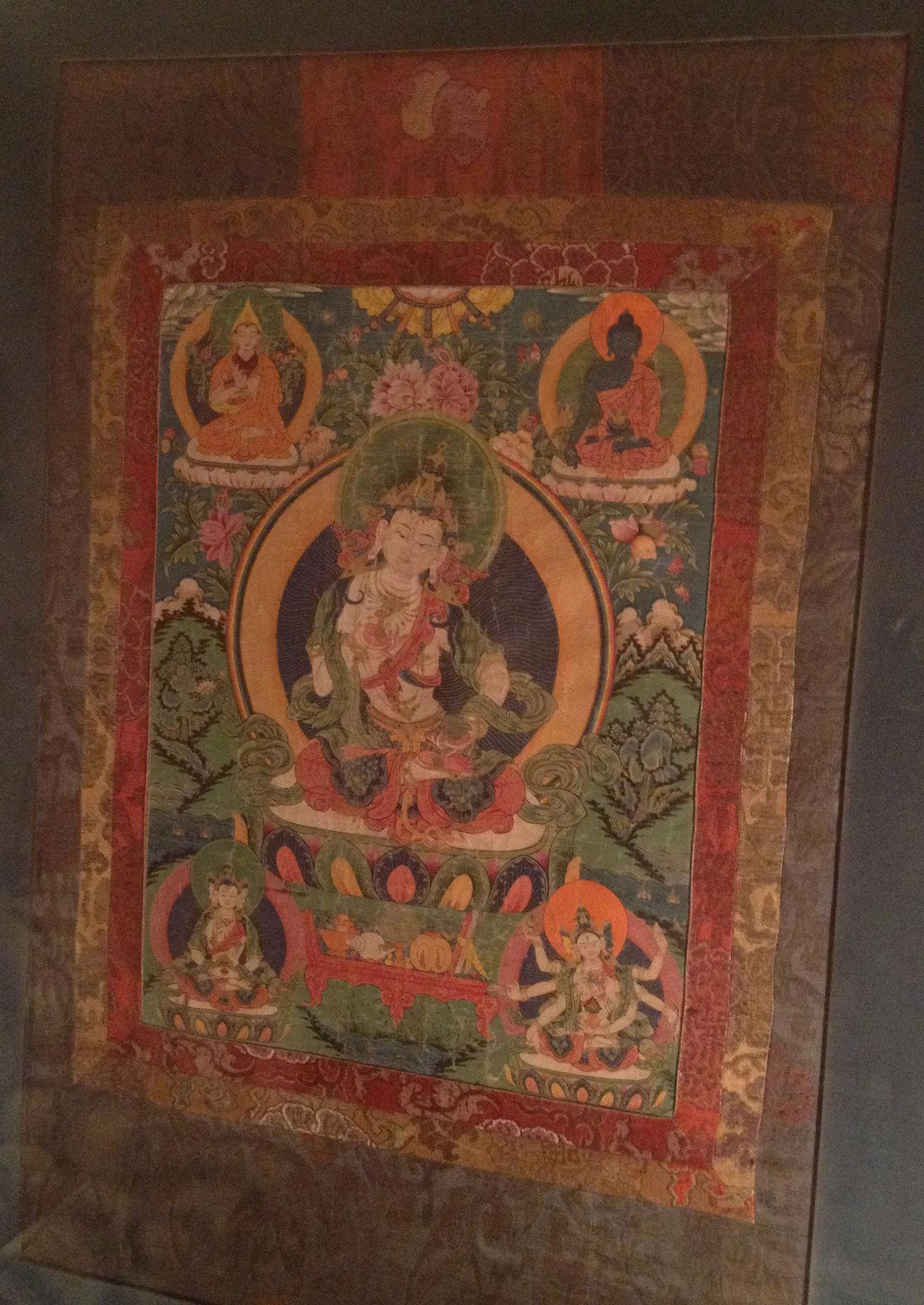Thangka of Vajrasattva, late 17th–early 18th century. Opaque watercolors on cloth, silk brocade mounting, 54 x 37 in. (137.2 x 94.0 cm). Brooklyn Museum, Gift of Sarah B. Sherrill, 2013.28. (Photo: Brooklyn Museum)