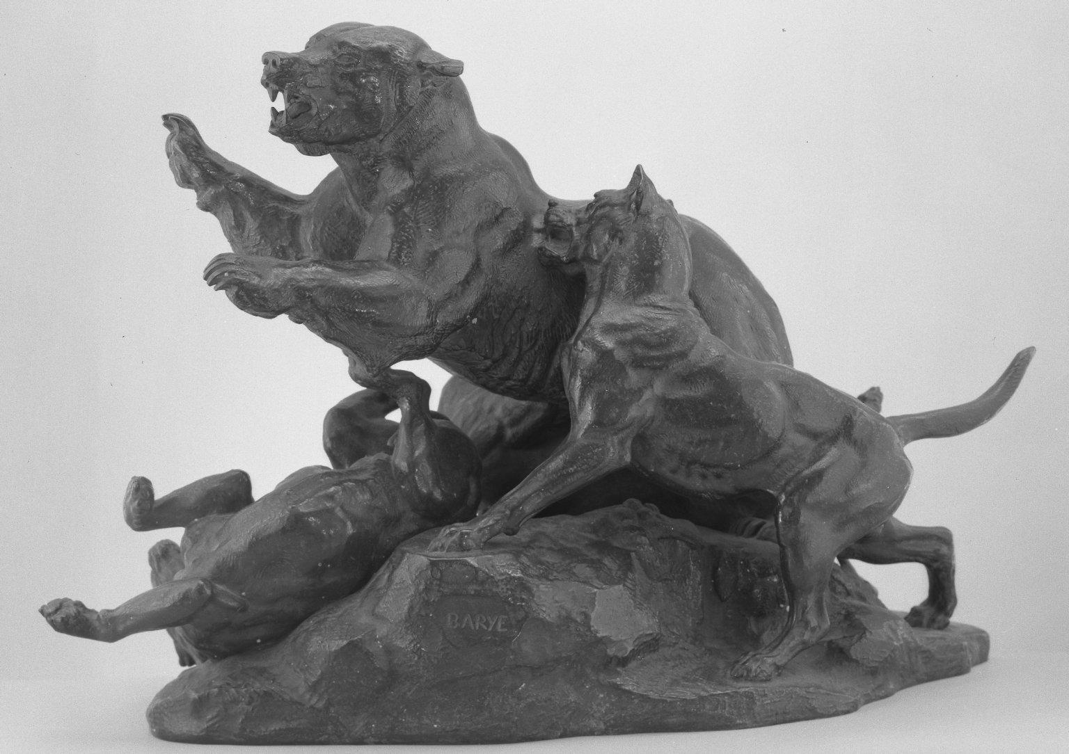 Antoine-Louis Barye (French, 1795–1875). Bear Fleeing Dogs (Ours fuyant des chiens), model date unknown; cast after 1870. Bronze, 12 3/4 x 18 1/4 x 7 1/2 in. (32.4 x 46.4 x 19.1 cm). Brooklyn Museum, Purchased by special subscription, 10.118. (Photo: Brooklyn Museum)