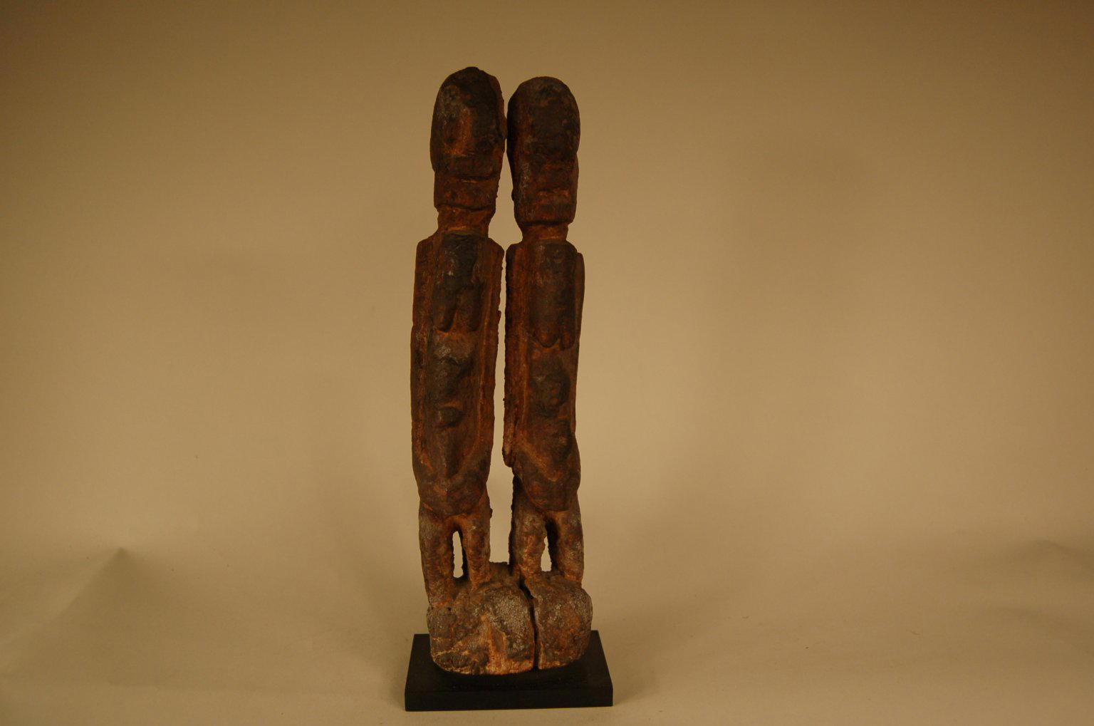 Dogon. Figure of Twins, early 20th century. Wood, organic or sacrificial materials, 11 5/8 x 3 9/16 x 2 3/16 in. (29.5 x 9 x 5.5 cm). Brooklyn Museum, Gift in memory of Frederic Zeller, 2014.54.20. (Photo: Brooklyn Museum)