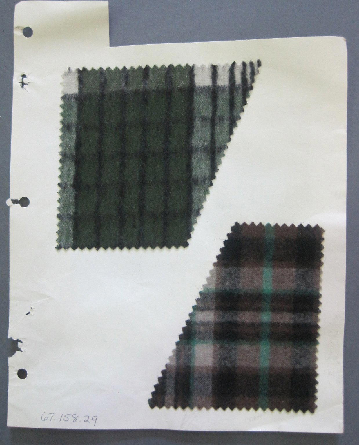 Fab-Tex Inc.. Fabric Swatch, 1963–1966. Cotton, sheet: 8 1/4 x 10 1/2 in. (21 x 26.7 cm) top left swatch: 5 x 4 1/2 in. (12.7 x 11.4 cm) bottom right swatch: 4 x 4 1/2 in. (10.2 x 11.4 cm). Brooklyn Museum, Gift of Fab-Tex Inc., 67.158.29. (Photo: Brooklyn Museum)