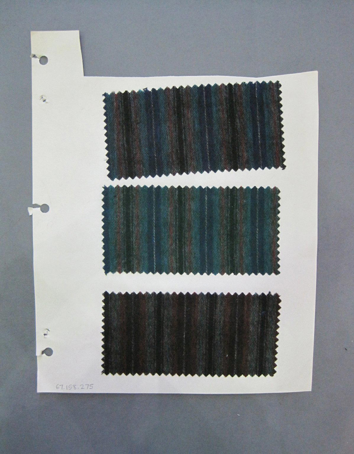 Fab-Tex Inc.. Fabric Swatch, 1963–1966. Wool, paper, sheet: 10 1/2 x 8 1/4 in. (26.7 x 21 cm) 2 1/2 x 5 1/4 in. (6.4 x 13.3 cm). Brooklyn Museum, Gift of Fab-Tex Inc., 67.158.275. (Photo: Brooklyn Museum)