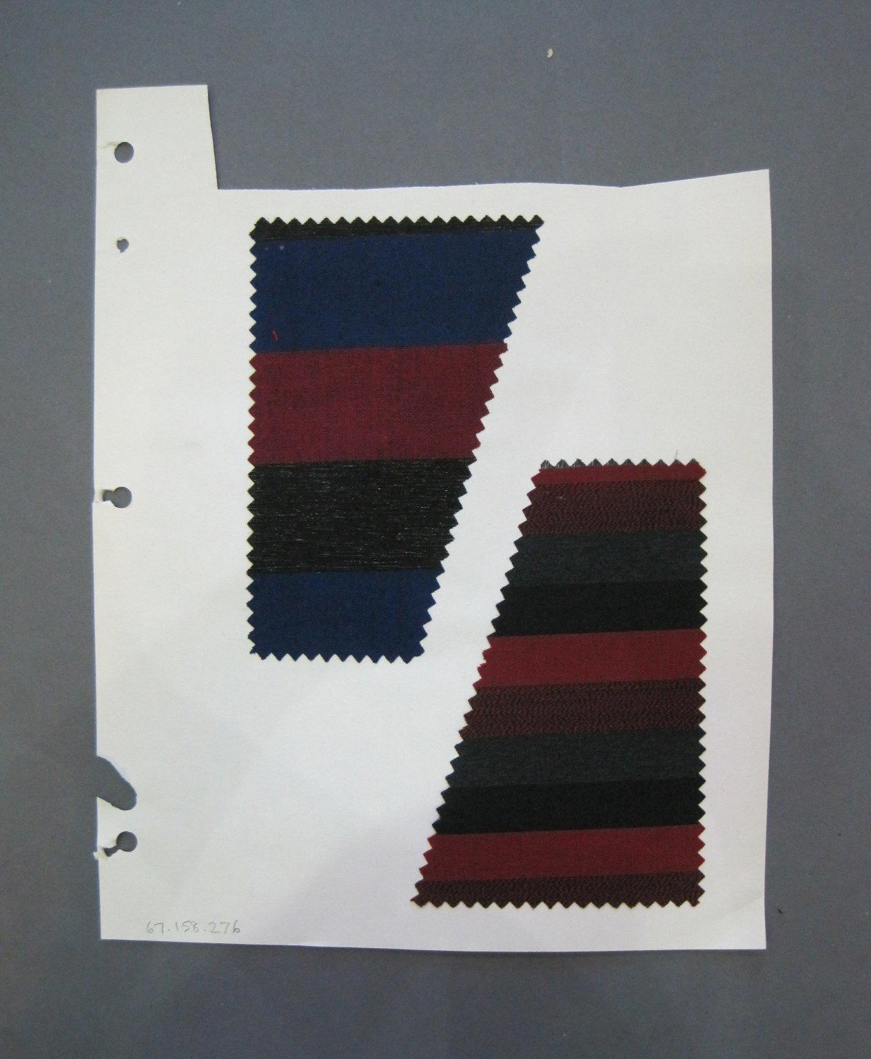 Fab-Tex Inc.. Fabric Swatch, 1963–1966. Cotton, acrylic or cellophane fiber, paper, sheet: 10 1/2 x 8 1/4 in. (26.7 x 21 cm) each swatch: 5 1/2 x 3 1/2 in. (14 x 8.9 cm). Brooklyn Museum, Gift of Fab-Tex Inc., 67.158.276. (Photo: Brooklyn Museum)