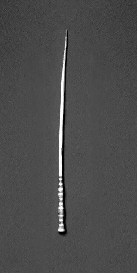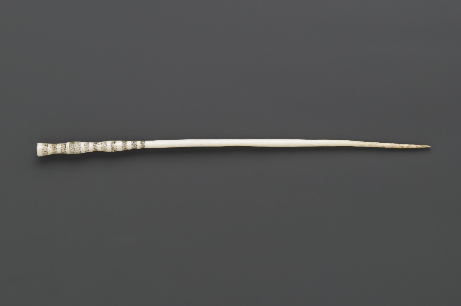 Mangbetu; or Zande. Hairpin, late 19th or early 20th century. Ivory, pigment, 7 3/4 in. (19.7 cm). Brooklyn Museum, Museum Expedition 1922, Robert B. Woodward Memorial Fund, 22.912. (Photo: Brooklyn Museum)