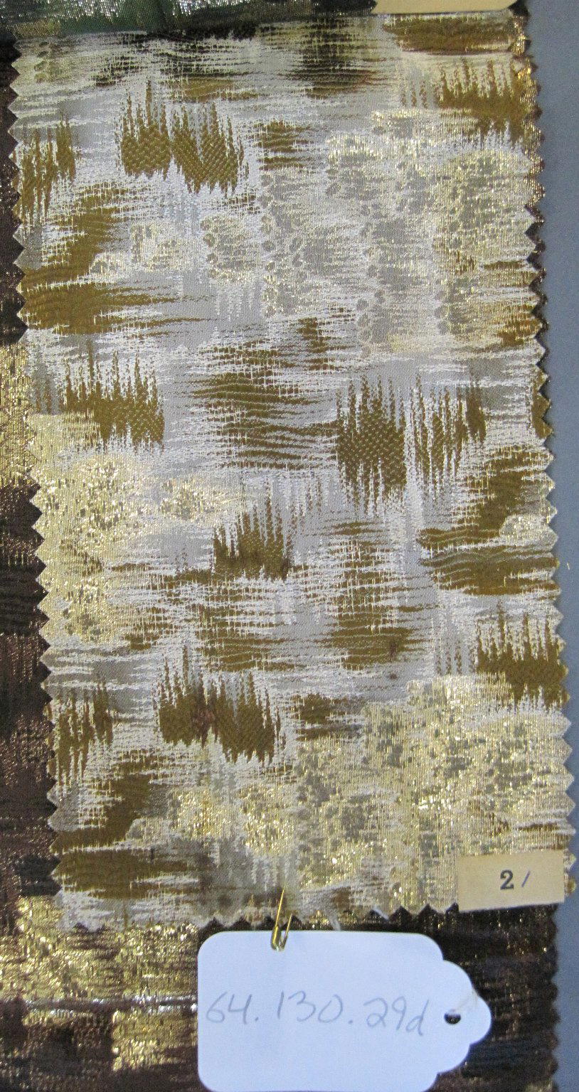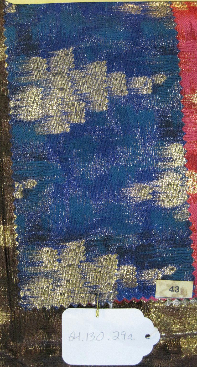 Onondaga Silk Company, Inc. (1925–1981). Textile Swatches, 1948–1959. Silk, metal, a-d: 9 x 5 in. (22.9 x 12.7 cm) e: 23 1/2 x 18 1/2 in. (59.7 x 47 cm). Brooklyn Museum, Gift of the Onondaga Silk Company, 64.130.29a-e. (Photo: Brooklyn Museum)