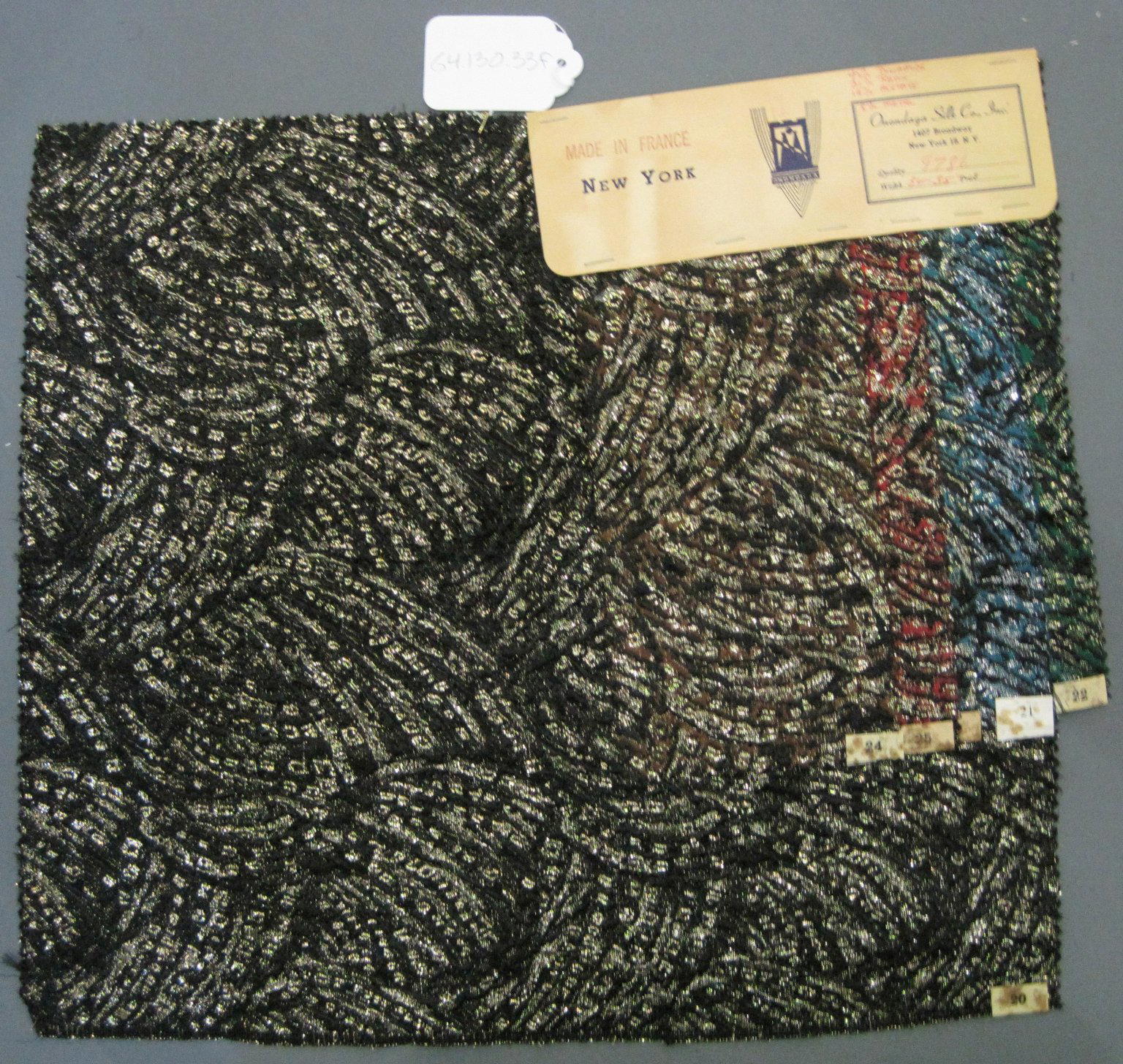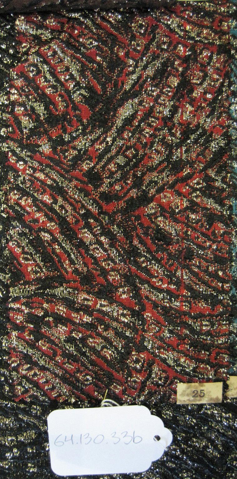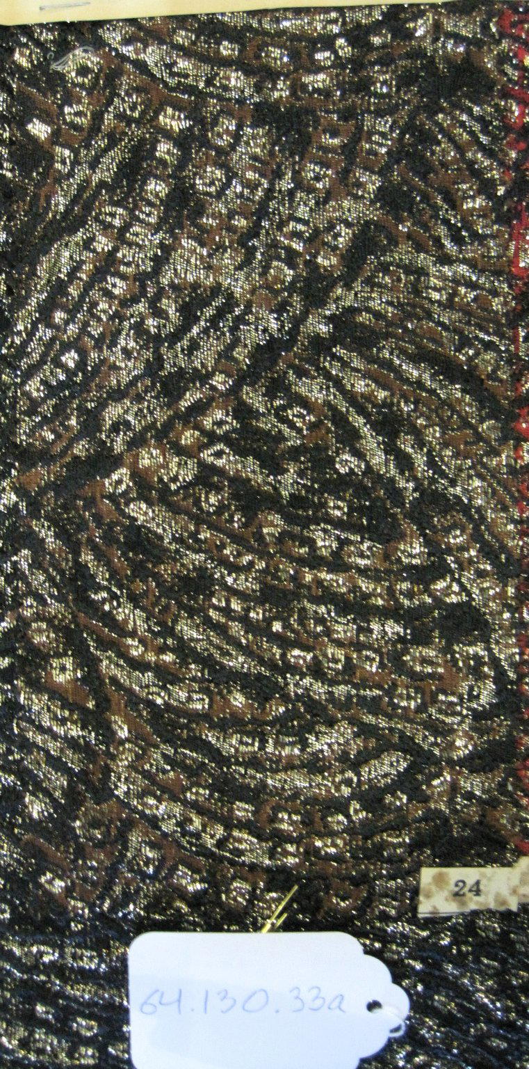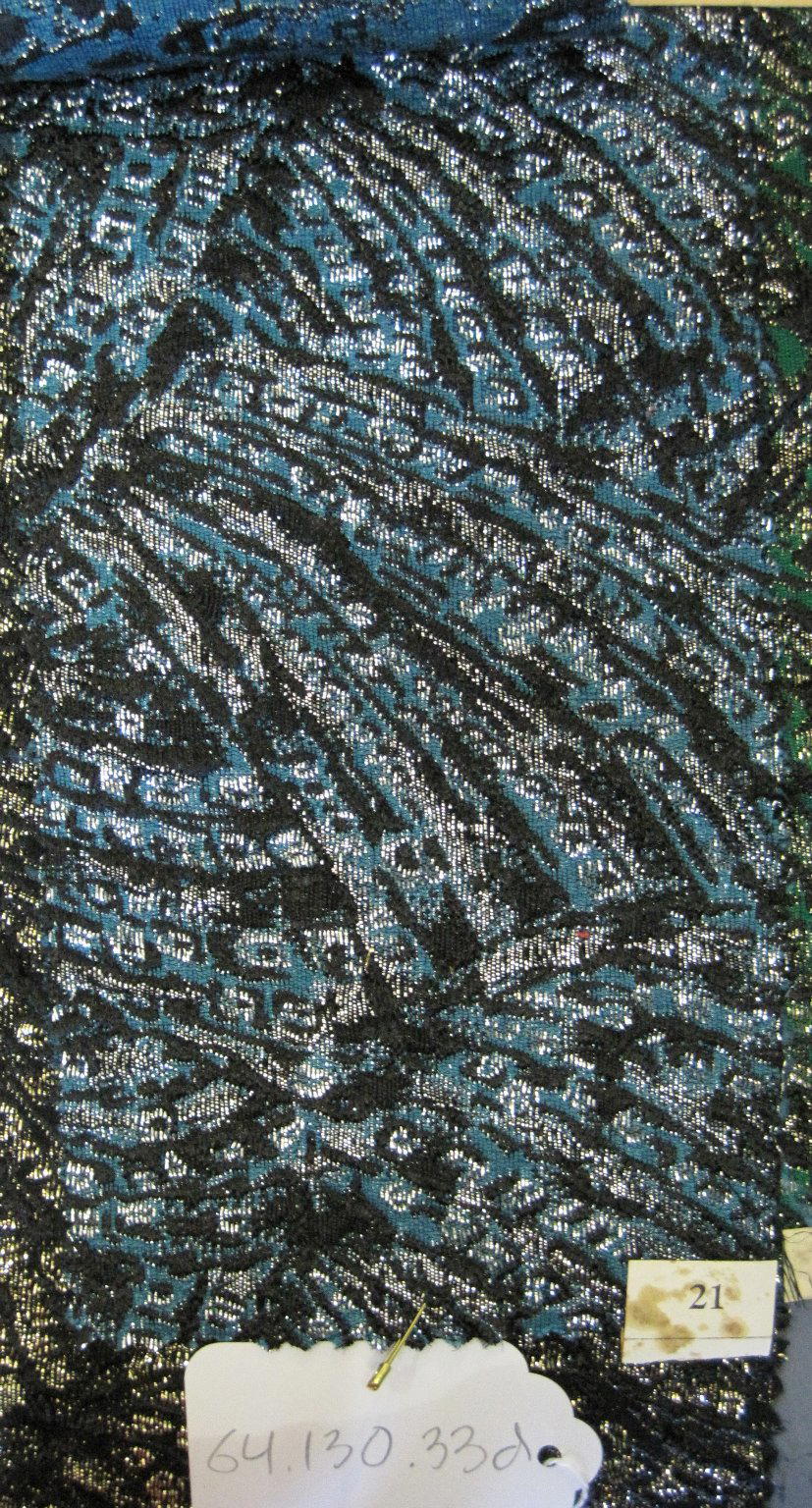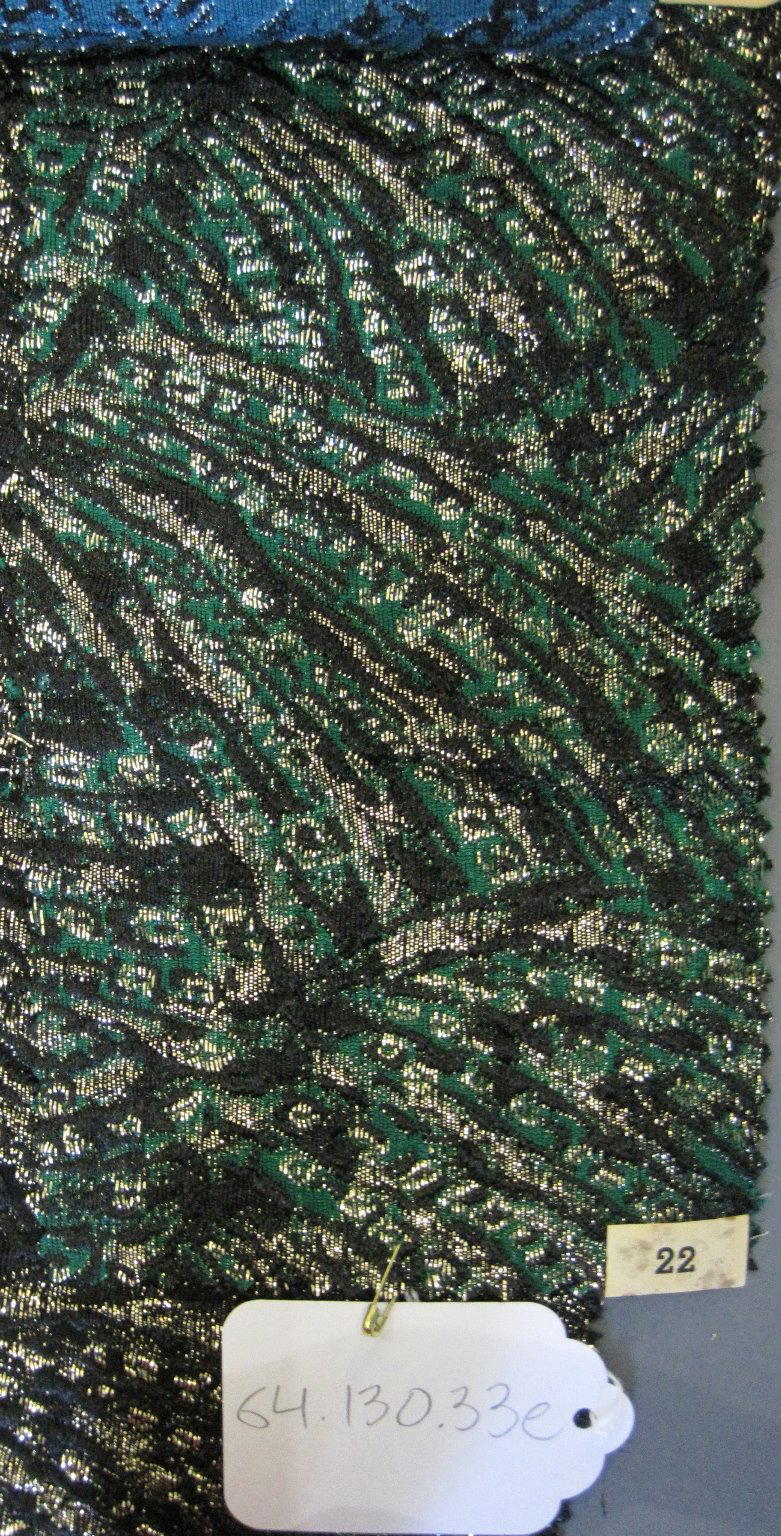 Onondaga Silk Company, Inc. (1925–1981). Textile Swatches, 1948–1959. 42% polyamide, 31% rayon, 19% acetate, 8% metal, a-e: 9 x 5 in. (22.9 x 12.7 cm) f: 18 1/2 x 16 1/2 in. (47 x 41.9 cm). Brooklyn Museum, Gift of the Onondaga Silk Company, 64.130.33a-f. (Photo: Brooklyn Museum)