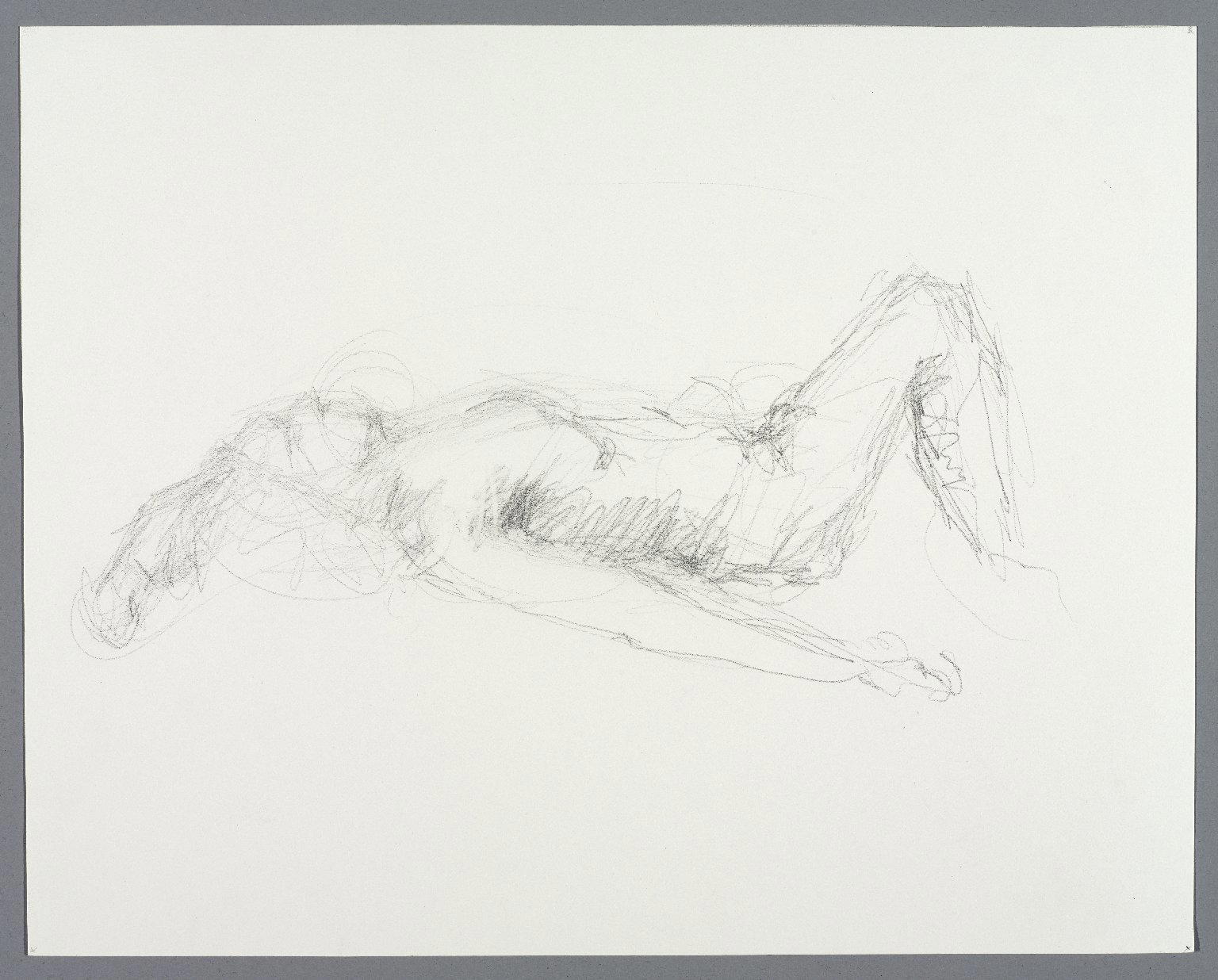 Jeremy Deller (British, born 1966); Okim Woo Kim (American, born Korea, 1942). Untitled (Lying Pose) from Iggy Pop Life Class by Jeremy Deller, 2016. Graphite pencil on paper, 11 1/2 × 14 1/2 in. (29.2 × 36.8 cm). Brooklyn Museum, Brooklyn Museum Collection, 2016.3.9b. (Photo: Brooklyn Museum)