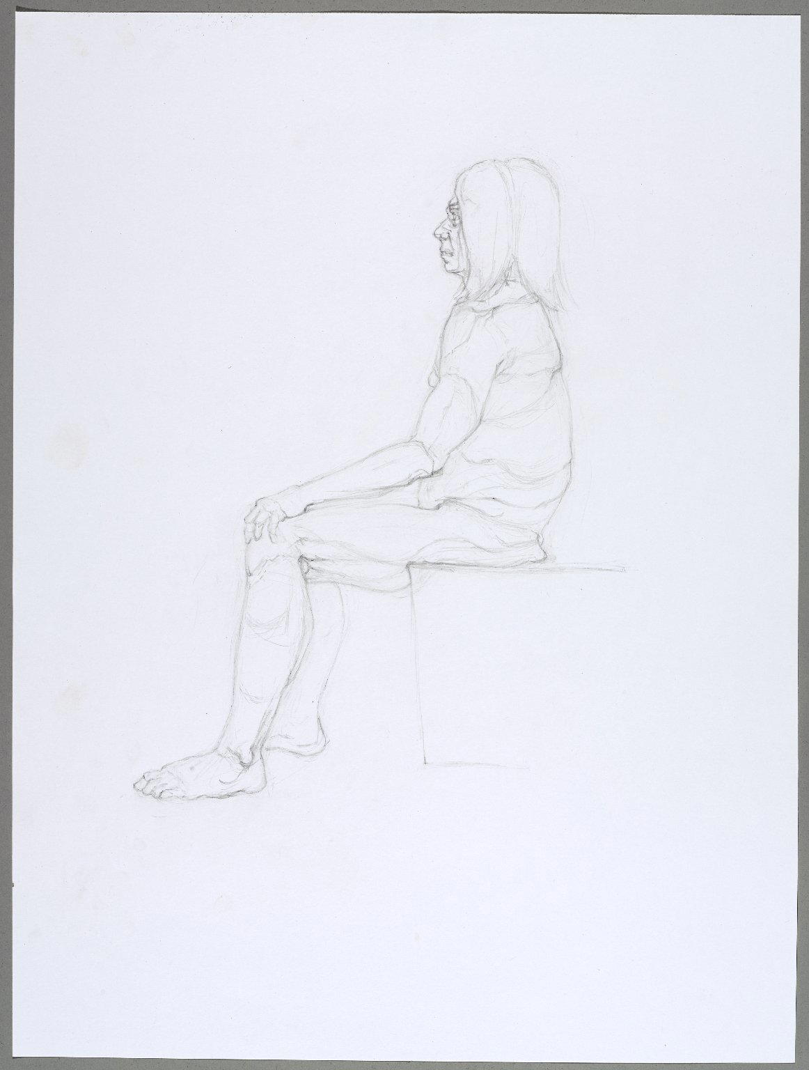 Jeremy Deller (British, born 1966); Danielle Rubin (American, born 1995). Untitled (Seated Pose) from Iggy Pop Life Class by Jeremy Deller, 2016. Graphite pencil with erasing on paper, 24 x 17 7/8 in. (61 x 45.4 cm). Brooklyn Museum, Brooklyn Museum Collection, 2016.3.17e. (Photo: Brooklyn Museum)