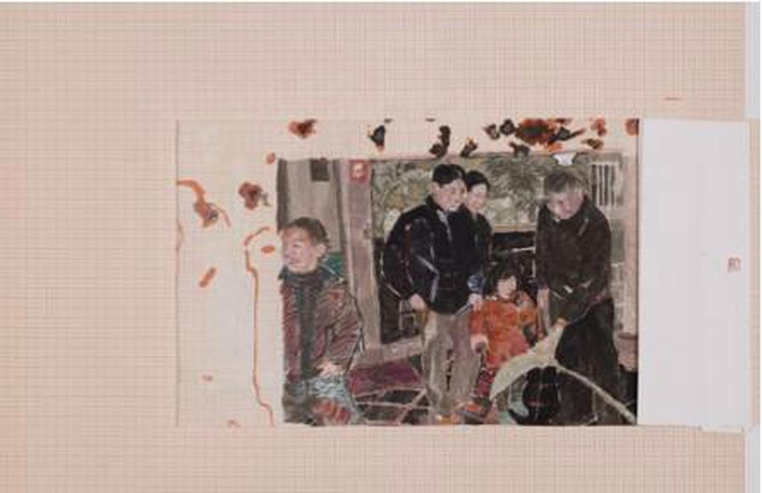 The Shanghai-based artist Chen Yujun was born and raised in a rural part of Fujian province, in southeastern China. In this extended series of collaged watercolors on graph paper, the artist records his impressions upon returning to his hometown for the New Year holiday. Part nostalgia, part elegy, and part social commentary, the series touches on such topics as the widespread exodus of young people from rural areas, the stripping of the land for natural resources, and the devaluation of traditional culture.