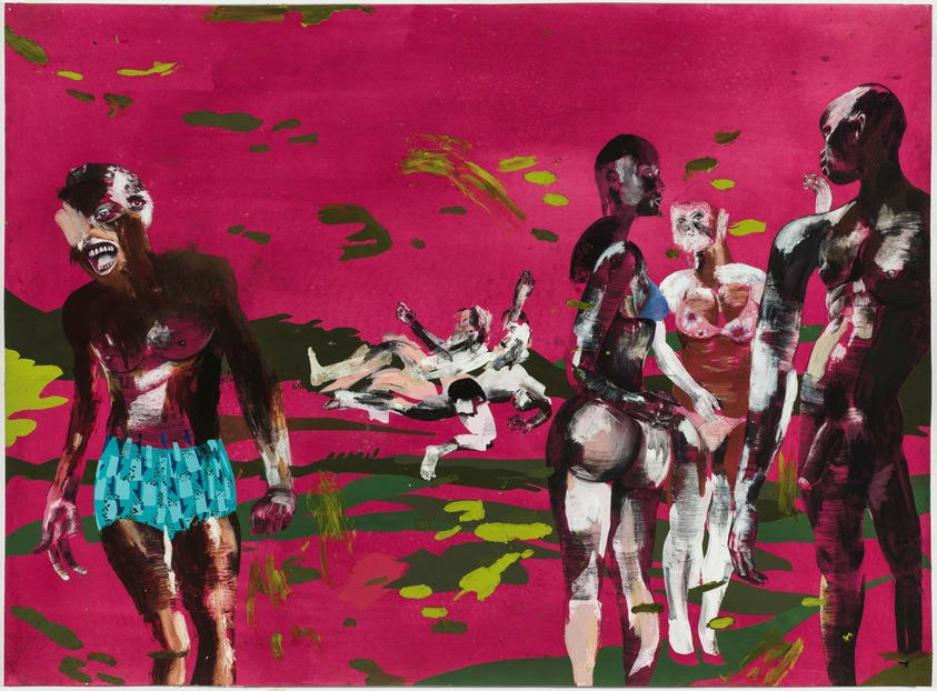 Wardell Milan (American, born 1977). Romantic Sunset, 2017. Graphite, gesso, acrylic, oil pastel, pastel, colored pencil with collage, on hand-colored paper, 43 3/4 × 59 in. (111.1 × 149.9 cm) frame (dims of frame upon arrival): 48 × 63 1/4 × 1 1/2 in. (121.9 × 160.7 × 3.8 cm). Brooklyn Museum, Gift of the Contemporary Art Committee and Alfred T. White Fund, 2017.13. (Photo: Courtesy of David Nolan Gallery)
