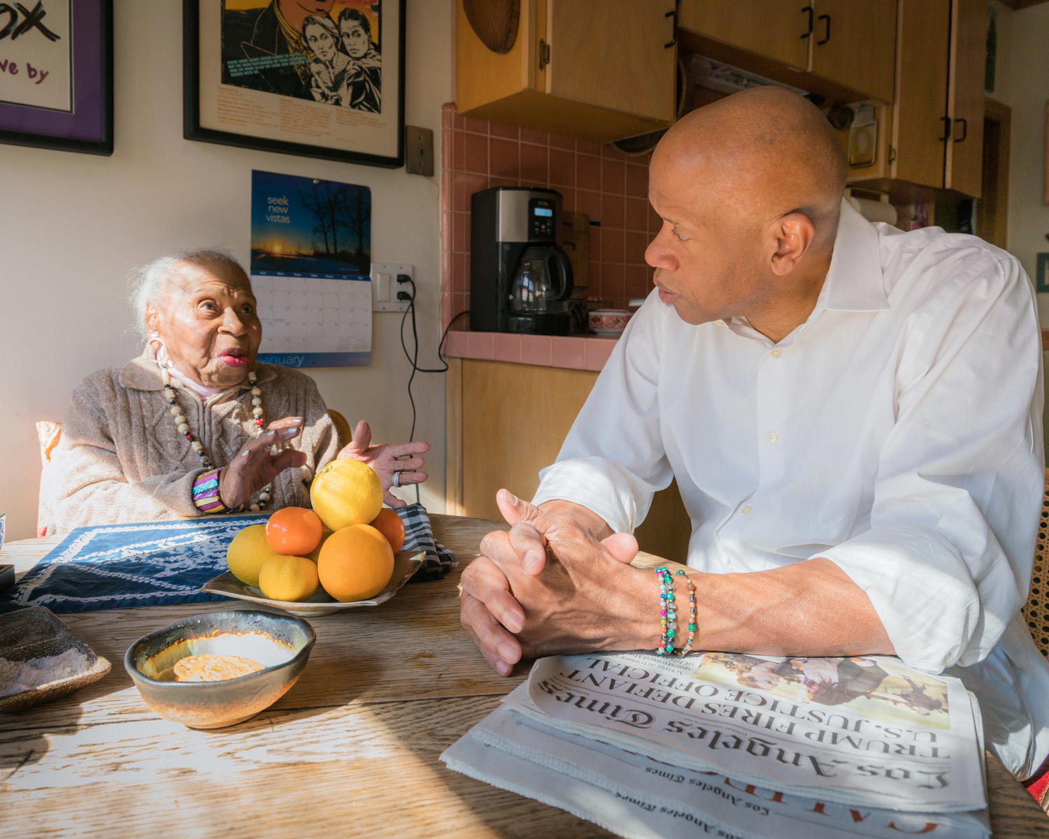 Kris Graves (American, born 1982). Tarabu and Mamie Kirkland in the Kitchen, Los Angeles, California, 2017. Inkjet print, sheet: 17 x 22 in. image: 14 x 17.5 in. Brooklyn Museum, Gift of the artist, 2017.25.4. (Photo: Courtesy of Kris Graves)