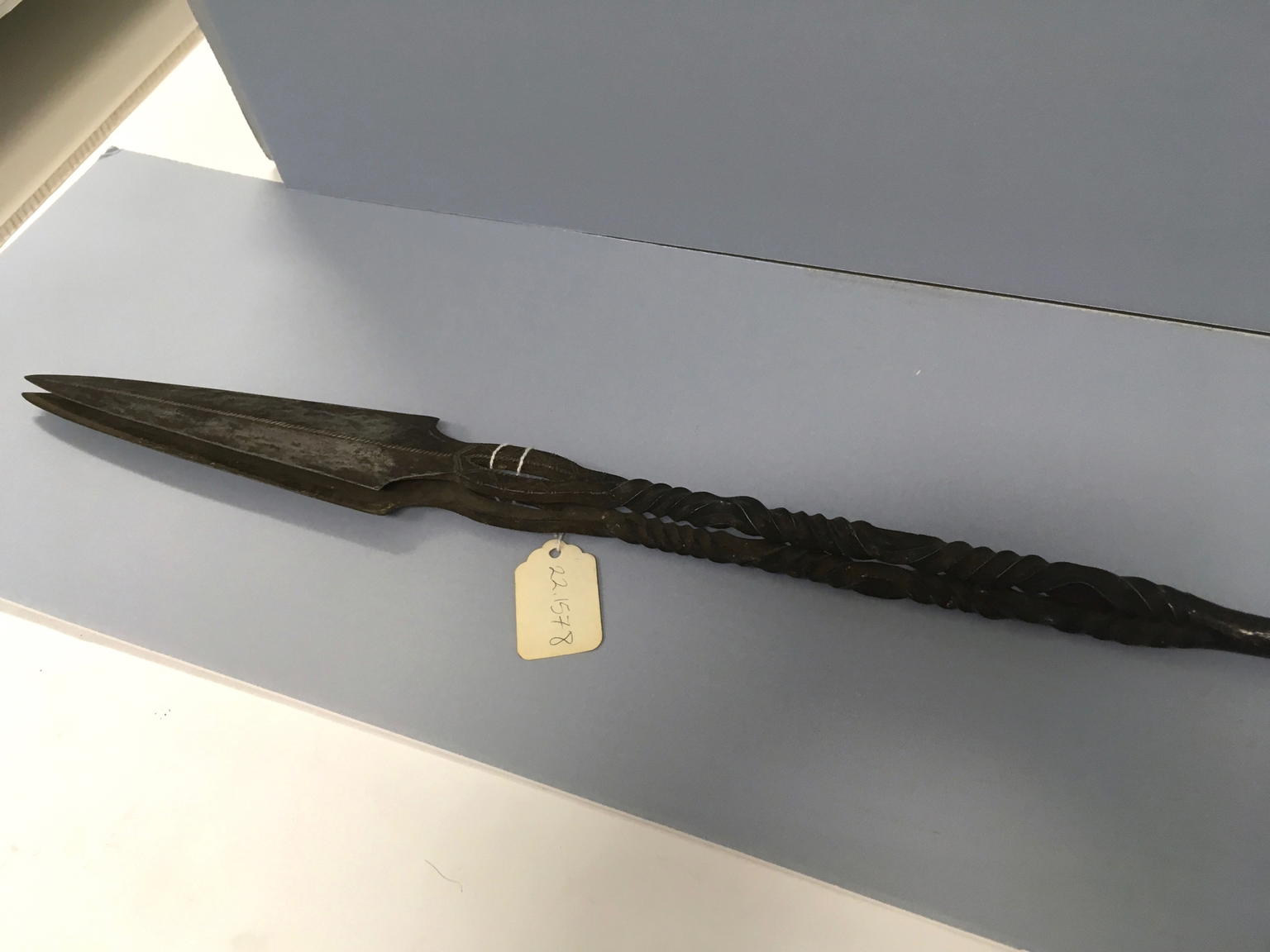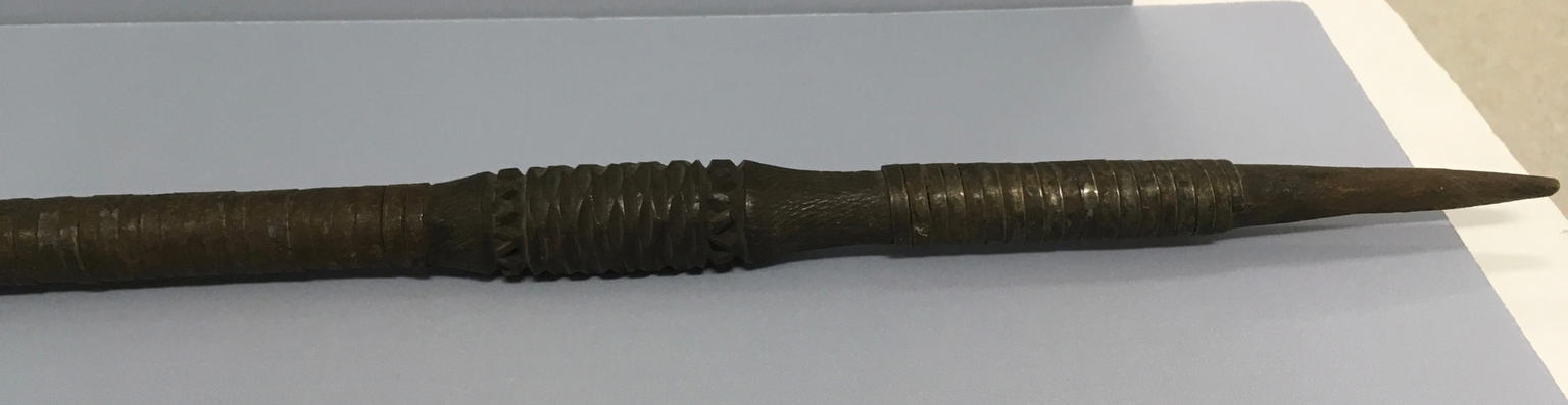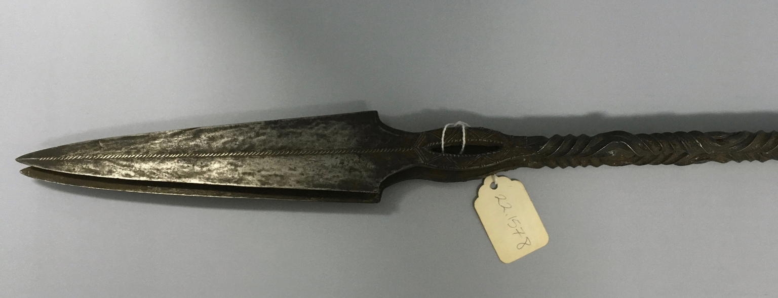 Edo. Spear (Asoro), late 19th or early 20th century. Iron, wood, fiber, 43 11/16 × 1 15/16 in. (111 × 5 cm). Brooklyn Museum, Museum Expedition 1922, Robert B. Woodward Memorial Fund, 22.1578. (Photo: Brooklyn Museum)