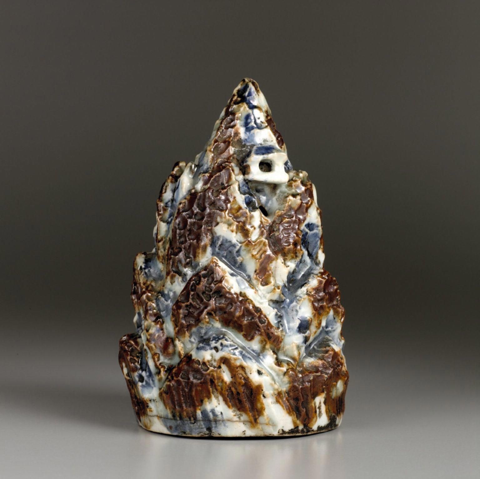 Waterdropper in Diamond Mountain Form, 19th century. Porcelain, underglaze, iron, 4 5/16 × 2 3/4 in. (11.0 × 7.0 cm). Lent by the Carroll Family Collection, L2018.6.8.
