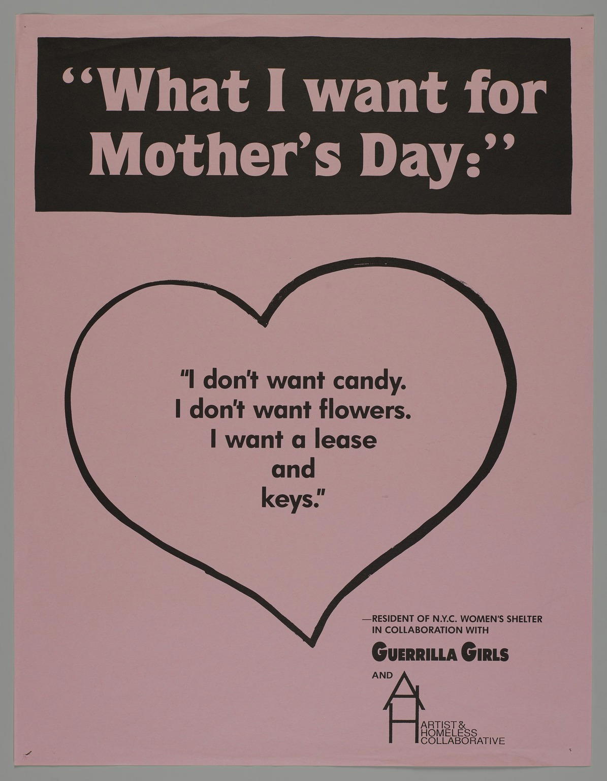 Guerrilla Girls (established United States, 1985). What I Want for Mother's Day, 1991. Offset lithograph, 22 × 17 in. (55.9 × 43.2 cm). Brooklyn Museum, Gift of Guerrilla Girls BroadBand, Inc., 2017.26.35. (Photo: Brooklyn Museum)
