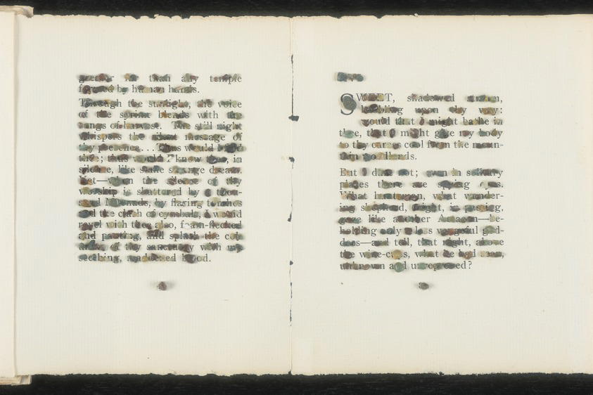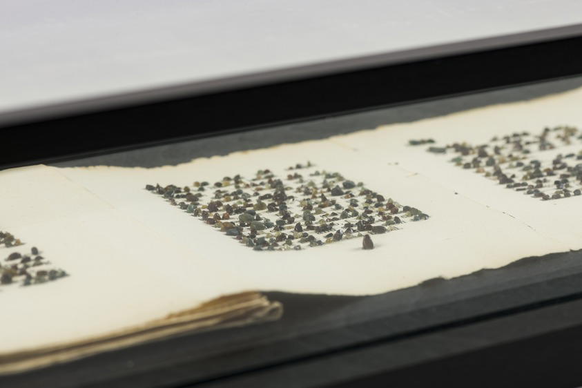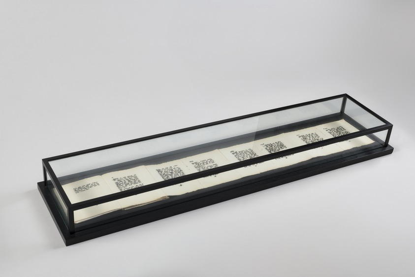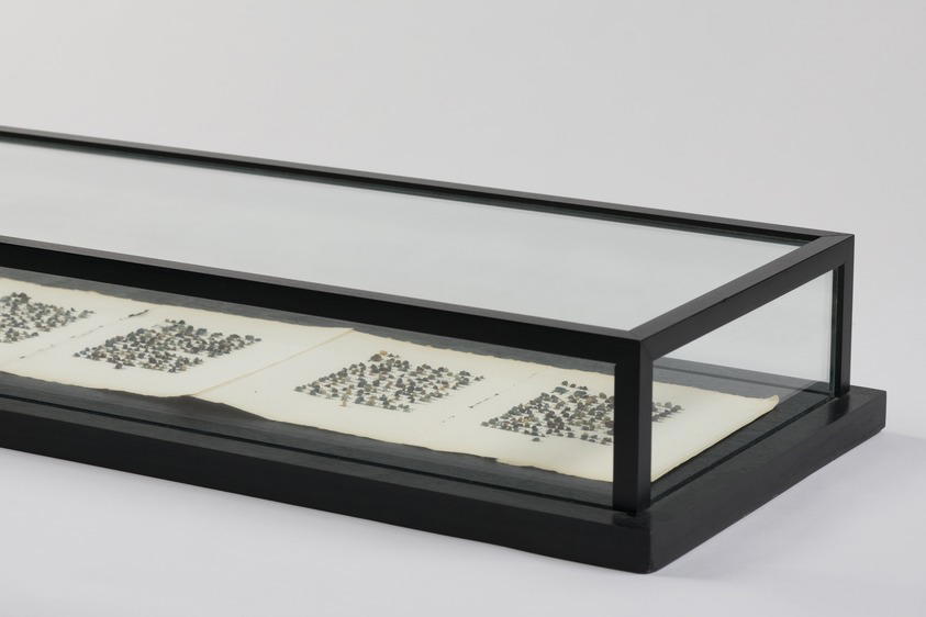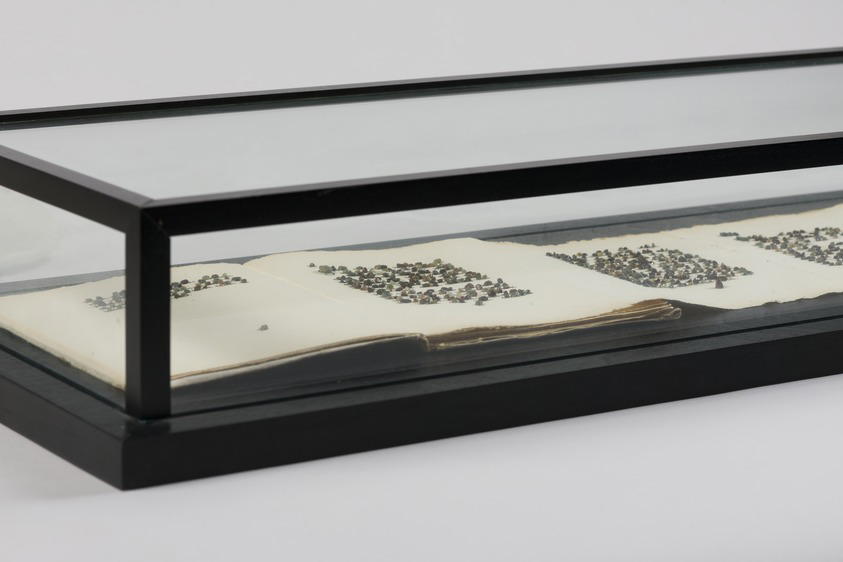 Ann Hamilton (American, born 1956). Untitled (Stone Book), 1992. Book, stones, lacquered birch, glass, 3 5/8 × 9 1/4 × 38 5/8 in. (9.2 × 23.5 × 98.1 cm). Brooklyn Museum, Gift of Sherry and Joel Mallin, 2023.43.1. (Photo: Brooklyn Museum)