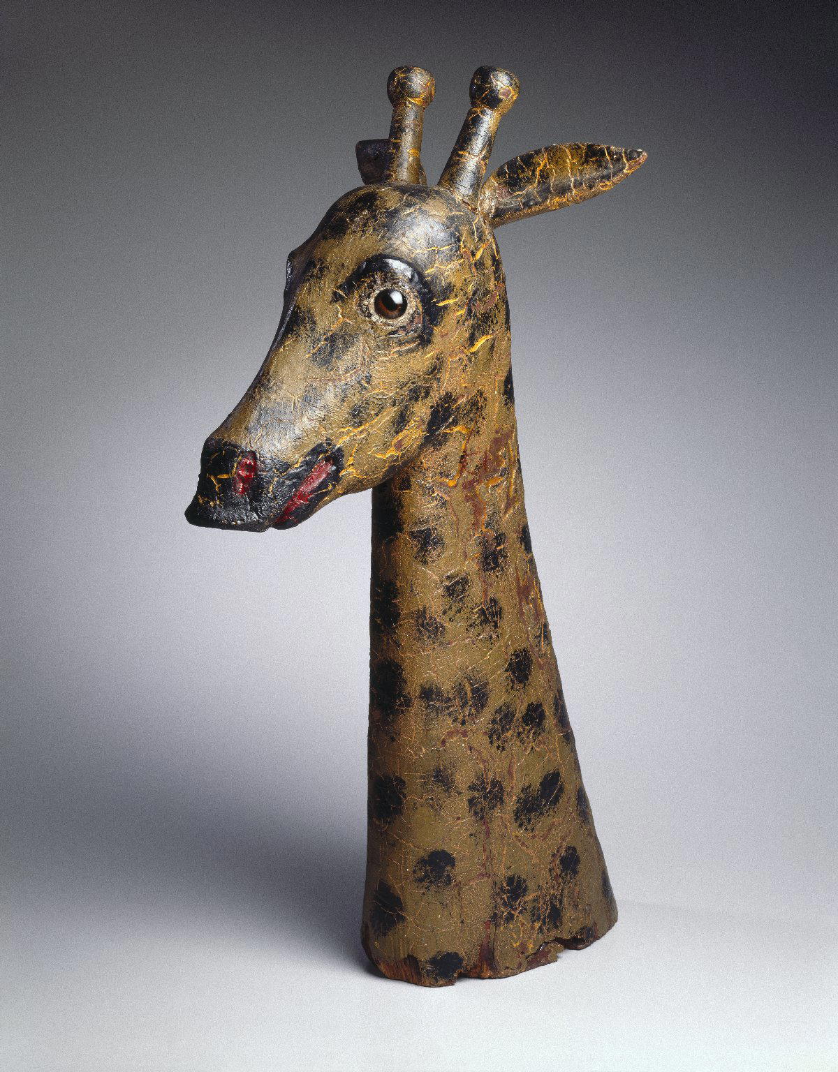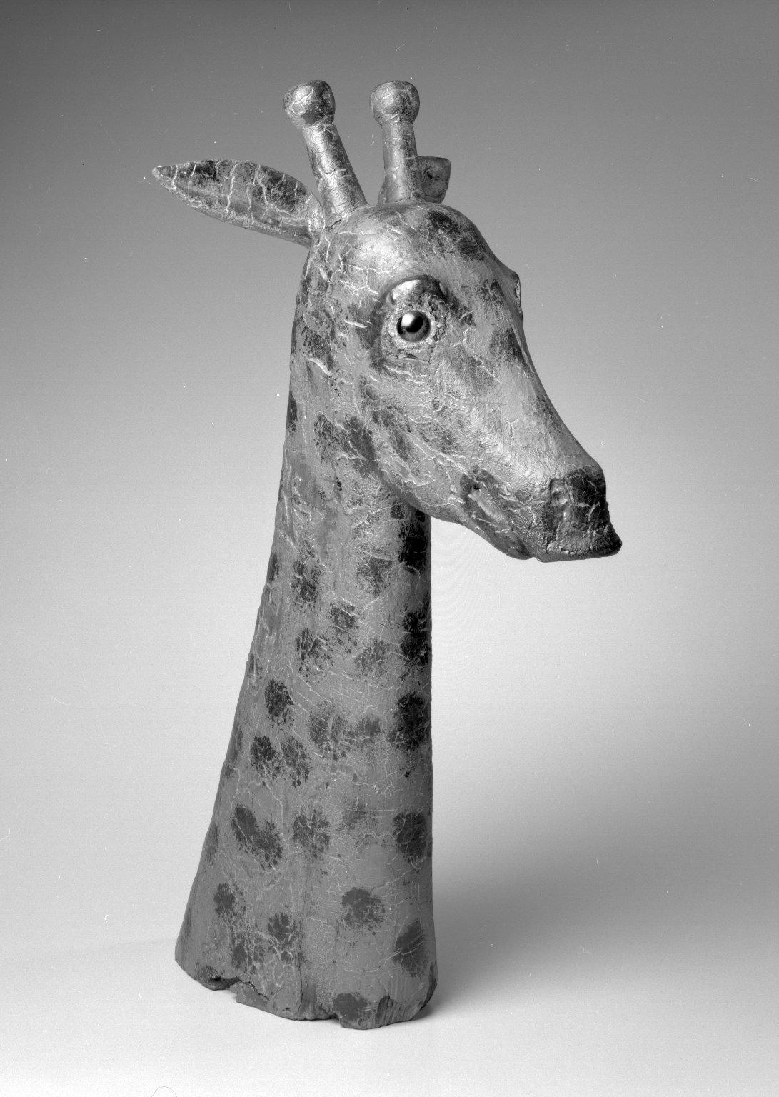 American. Giraffe Head, 1850–1900. Painted wood, glass (possibly), 26 x 11 x 13 in. (66.0 x 27.9 x 33.0 cm). Brooklyn Museum, Gift of The Guennol Collection, 2000.48. (Photo: Brooklyn Museum)