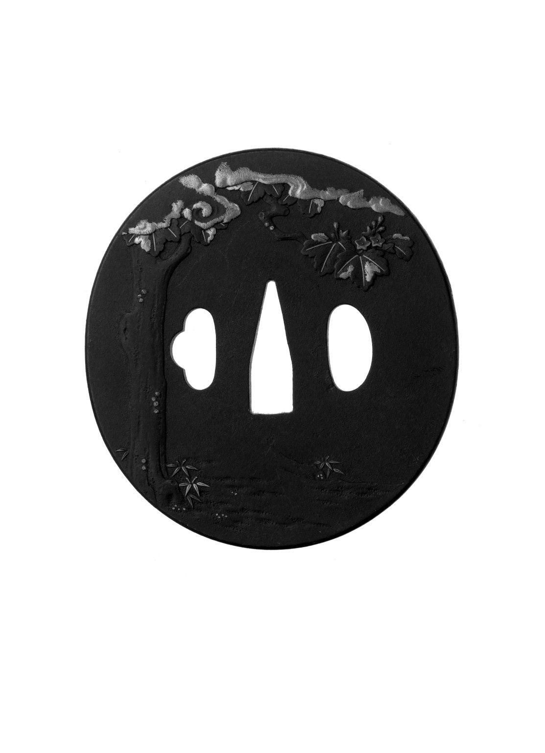 Kaomi of Mito (Japanese). Sword Guard, mid–19th century. Iron, iroe, 3 3/16 x 3 1/16 x 3/16 in. (8.1 x 7.7 x 0.4 cm). Brooklyn Museum, Gift of F. Ethel Wickham, 28.631. (Photo: Brooklyn Museum)