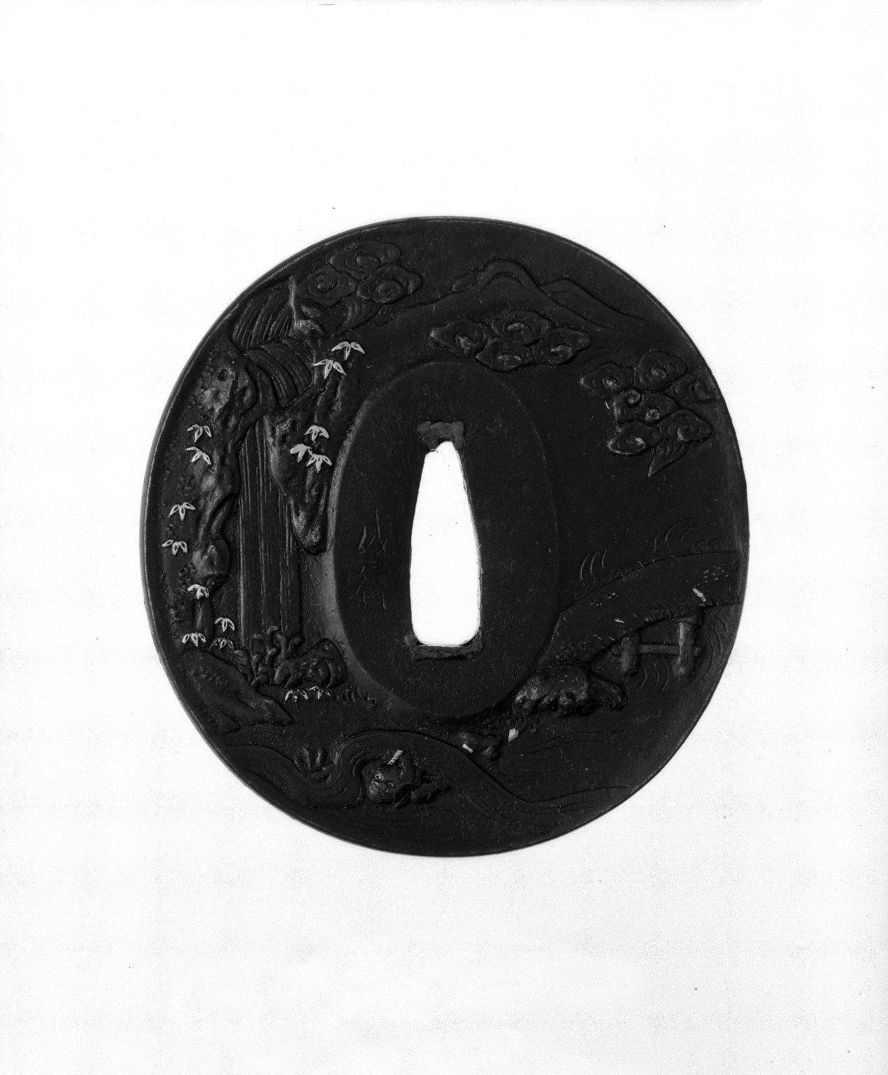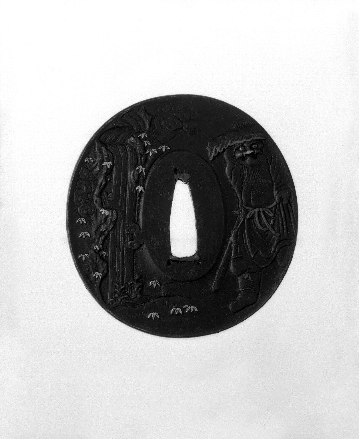 Sword Guard, ca. 1800. Iron with copper inlay and gilding, 2 15/16 x 2 7/8 in. (7.5 x 7.3 cm). Brooklyn Museum, Gift of F. Ethel Wickham, 28.728. (Photo: Brooklyn Museum)