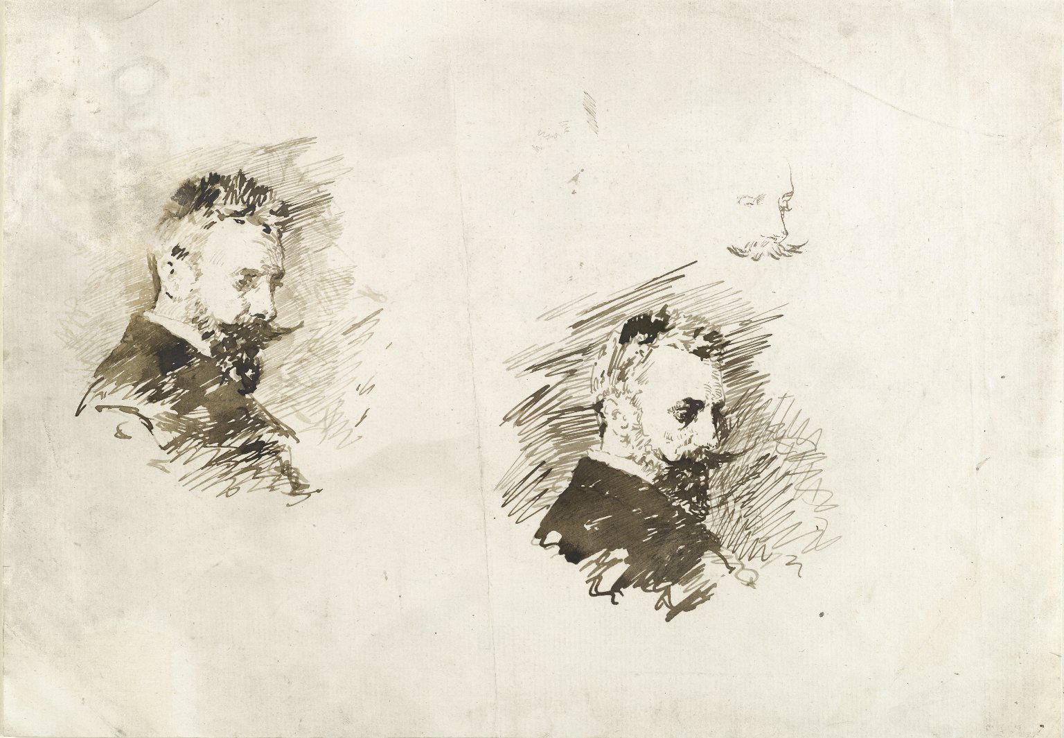William Merritt Chase (American, 1849–1916). Self-Portrait Studies, ca. 1886. Brown ink on off-white, medium-weight, moderately textured laid paper, Sheet: 11 1/2 x 16 1/2 in. (29.2 x 41.9 cm). Brooklyn Museum, Gift of Newhouse Galleries, Inc., 29.27.12. (Photo: Brooklyn Museum)