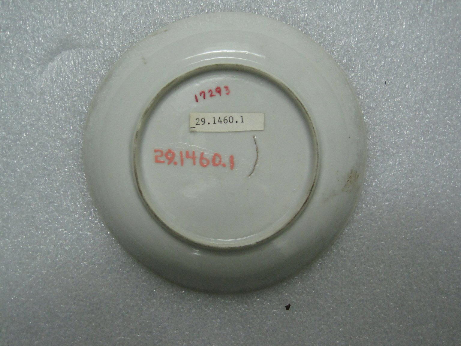 Saucer, 18th century. Porcelain, 3/4 x 4 3/4 in. (1.9 x 12.1 cm). Brooklyn Museum, Bequest of Samuel E. Haslett, 29.1460.1. (Photo: Brooklyn Museum)